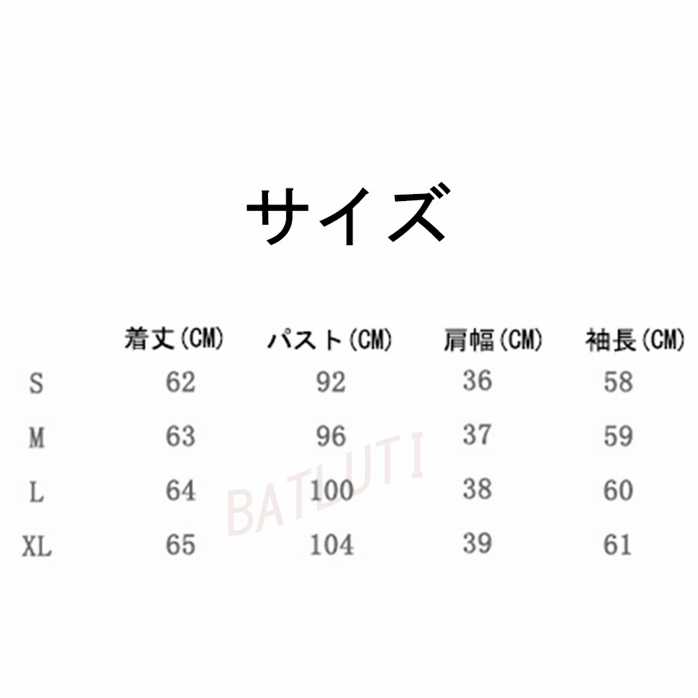 サイズ(cm):S、M、L、XL、XXL S:パスト:92CM 着丈:62CM 袖長:58CM 肩幅:36CM