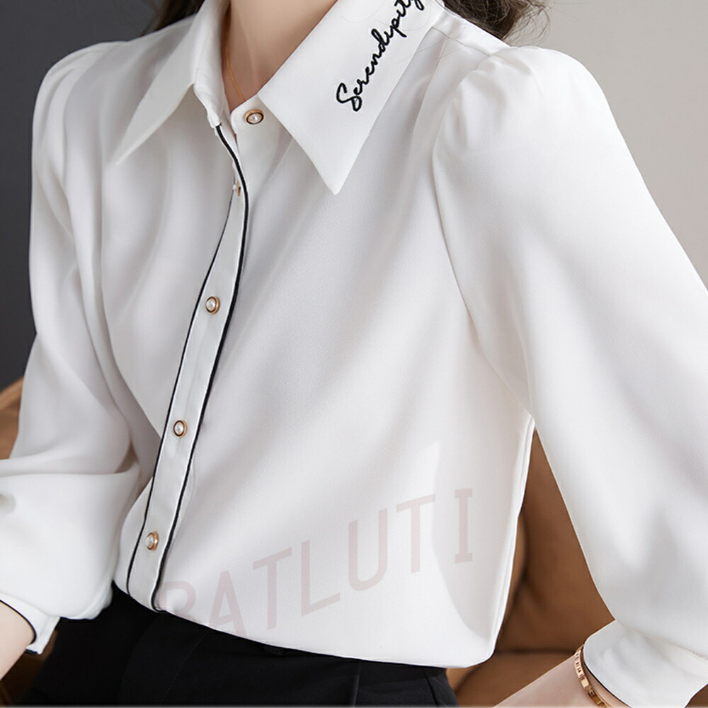 シャツ 上品 シフォンブラウス 長袖シャツ 前開き オフィス 韓国風 オフィスカジュアル 通勤 仕事 OL トップス ボタン オシャレ 可愛い