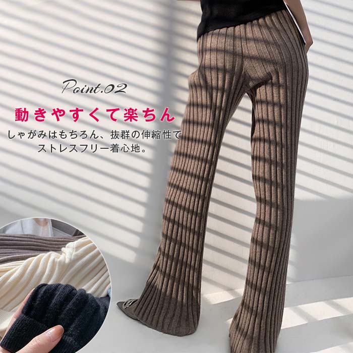 リブニットパンツ レディース フレアパ