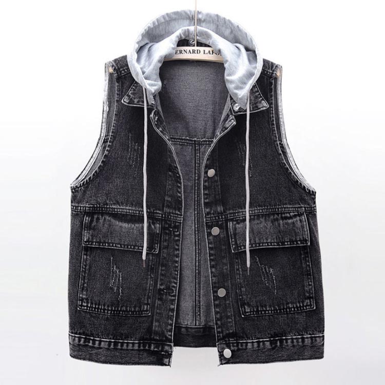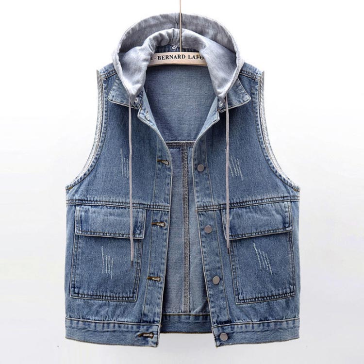 デニム ベスト レディース フード付き