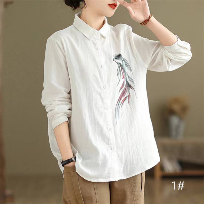 ダブルガーゼ シャツ 長袖 柄 2重ガ