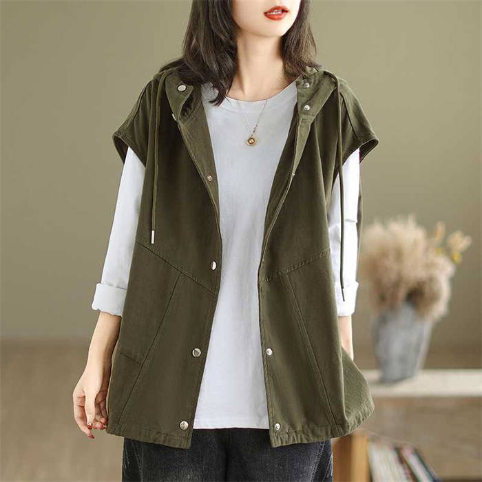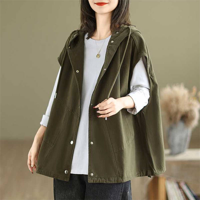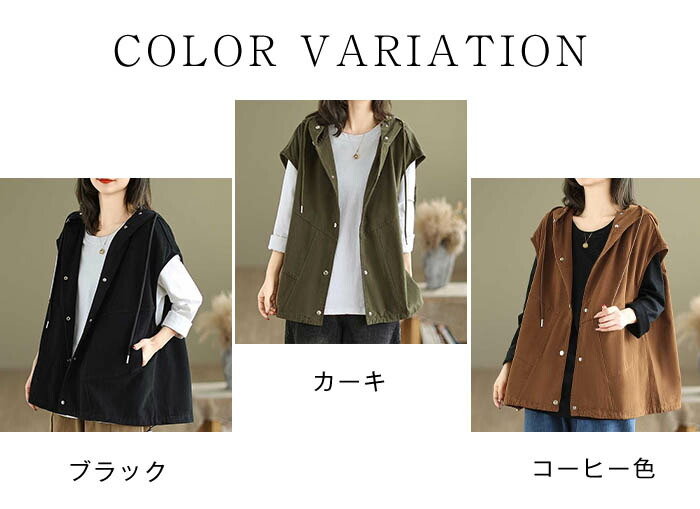 フード付きベスト レディース 春秋 着