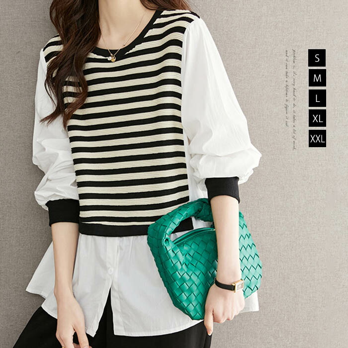 シアースリーブ ドッキングシャツ ボウタイシャツブラウス