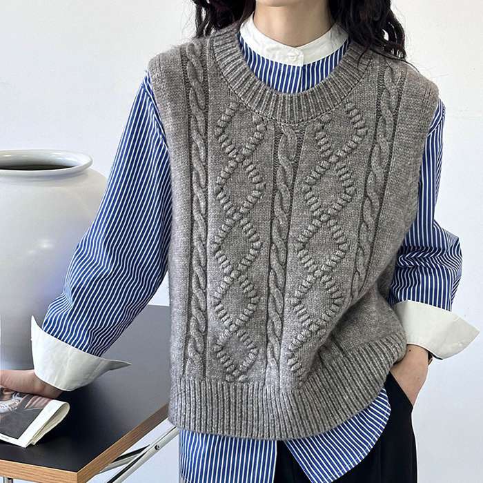 ニットベスト レディース ベスト 秋 冬 春 ケーブル編み 無地 ノースリーブ クルーネック トップス ニットウェア 重ね着 着回し ジレベスト シンプル カジュアル レイヤード