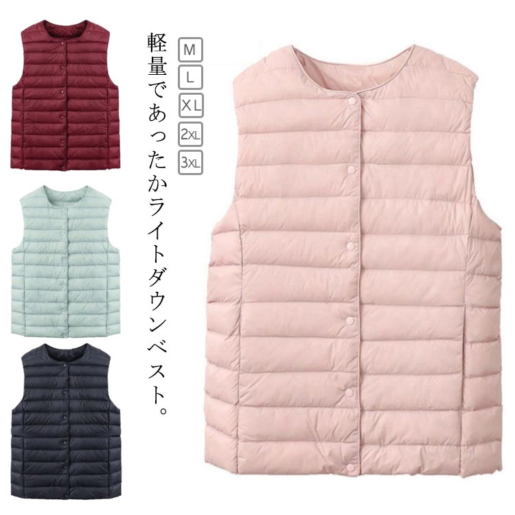 ベスト レディース 中綿ベスト 秋冬 ジレ あったか ライトダウンベスト インナーダウンベスト あったかグッズ ナイトウェア M L XL 2XL 3XL