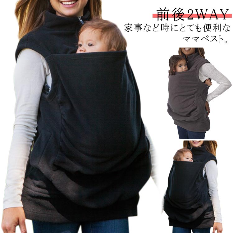 袖なし ママベスト フリース ママコート おんぶも抱っこもOK ベスト 抱っこパーカー ママパーカー 前後2WAY 抱っこ紐 ノースリーブ