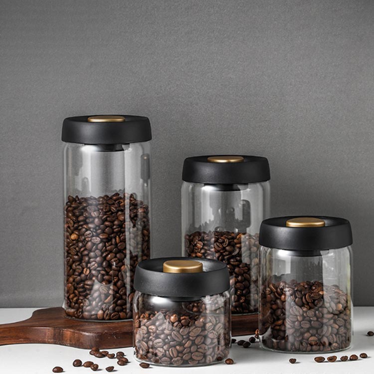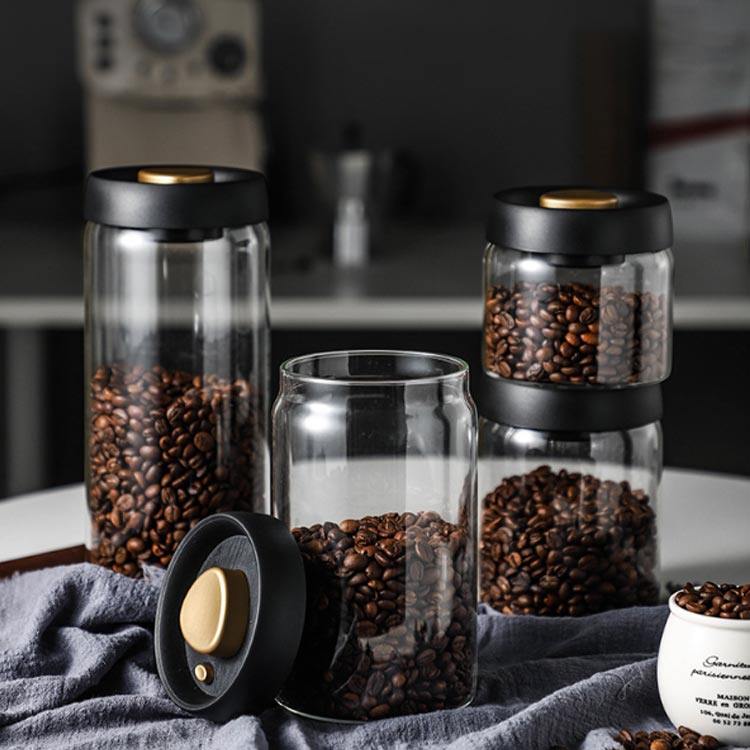 コーヒー豆貯蔵容器 ガラス 真空ジャー 密閉型 北欧 キッチン収納 スナック ティー 粉 乳 容器 収納 真空 食品 保存 キャニスター 気密ガラスジャー