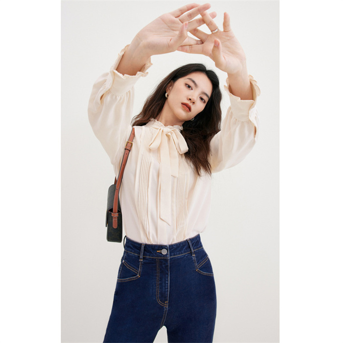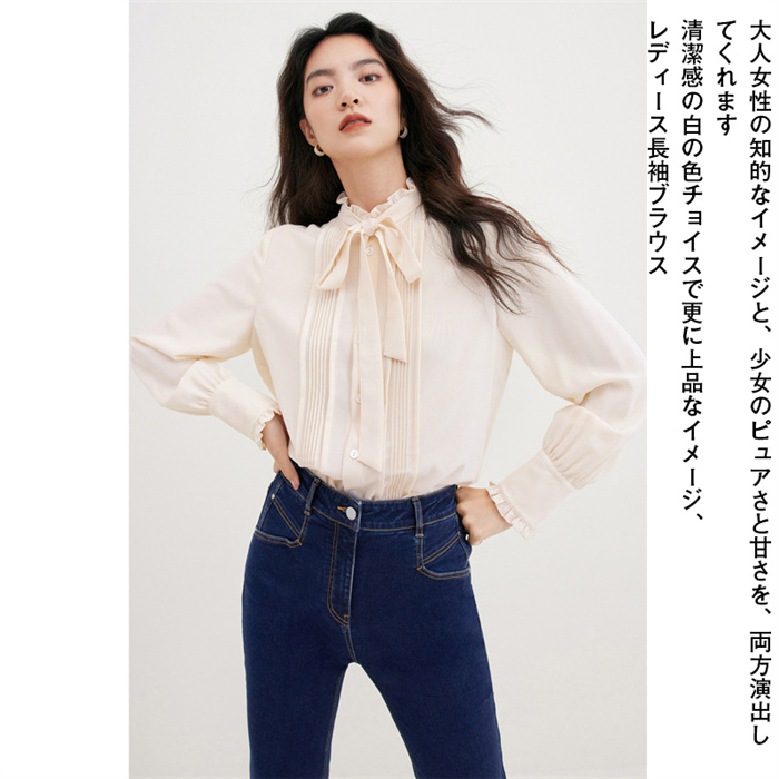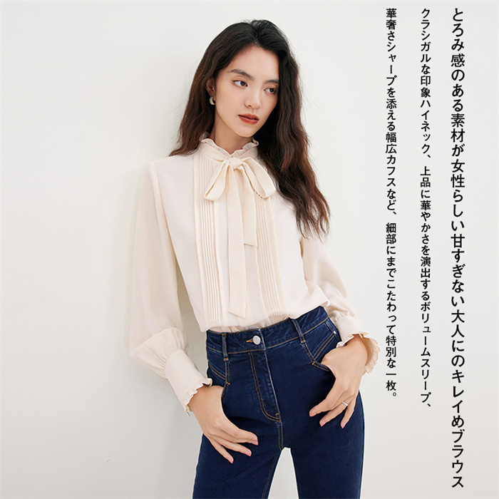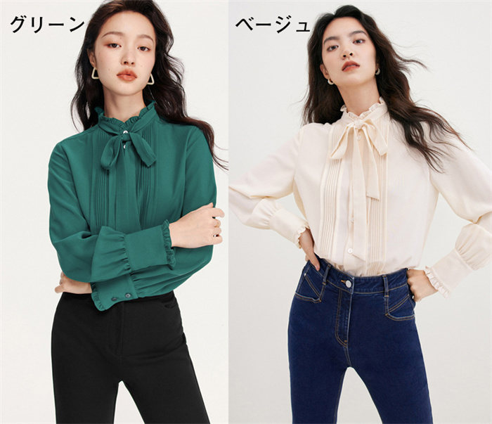 シアースリーブ ドッキングシャツ ボウタイシャツブラウス