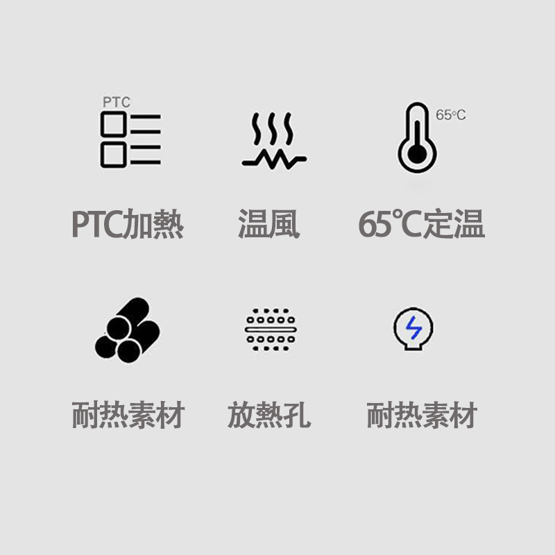 ■靴乾燥機の内部発熱体は自動温度制御で、温度は55-65℃に保たれます。一般的な素材の靴に使用できます。