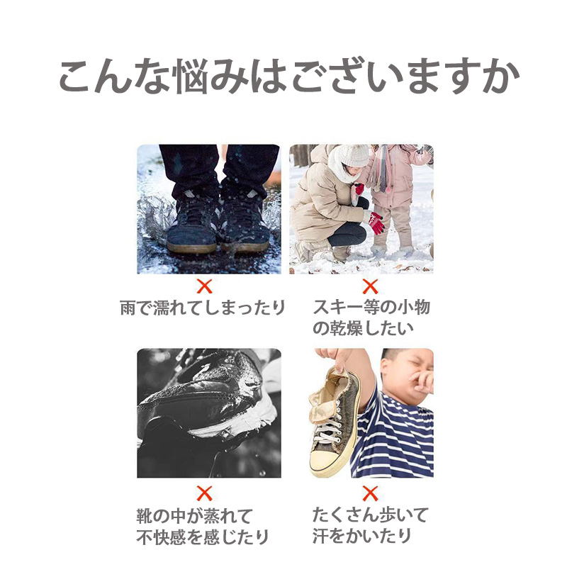 急な雨や梅雨の時期、冬は雪で靴が濡れてしまい、翌日になっても乾いていない…。