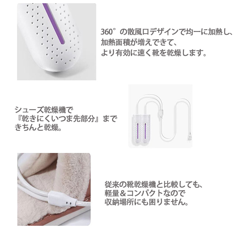 くつ乾燥機 靴乾燥機 シューズドライヤー くつ 乾燥 タイマー機能 消臭 除菌 ニオイ防止 革靴 スニーカー 運動靴 静音 長靴 ブーツ 梅雨対策【品番】dk22405a033white【サイズ】【素材】PC【仕様】【製品について】