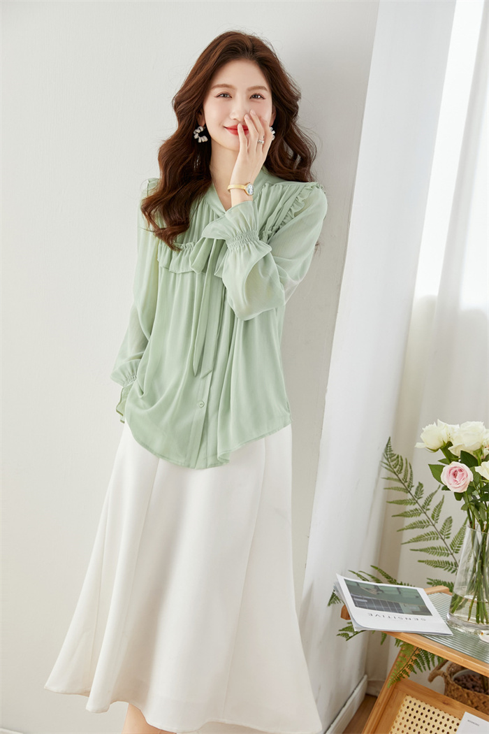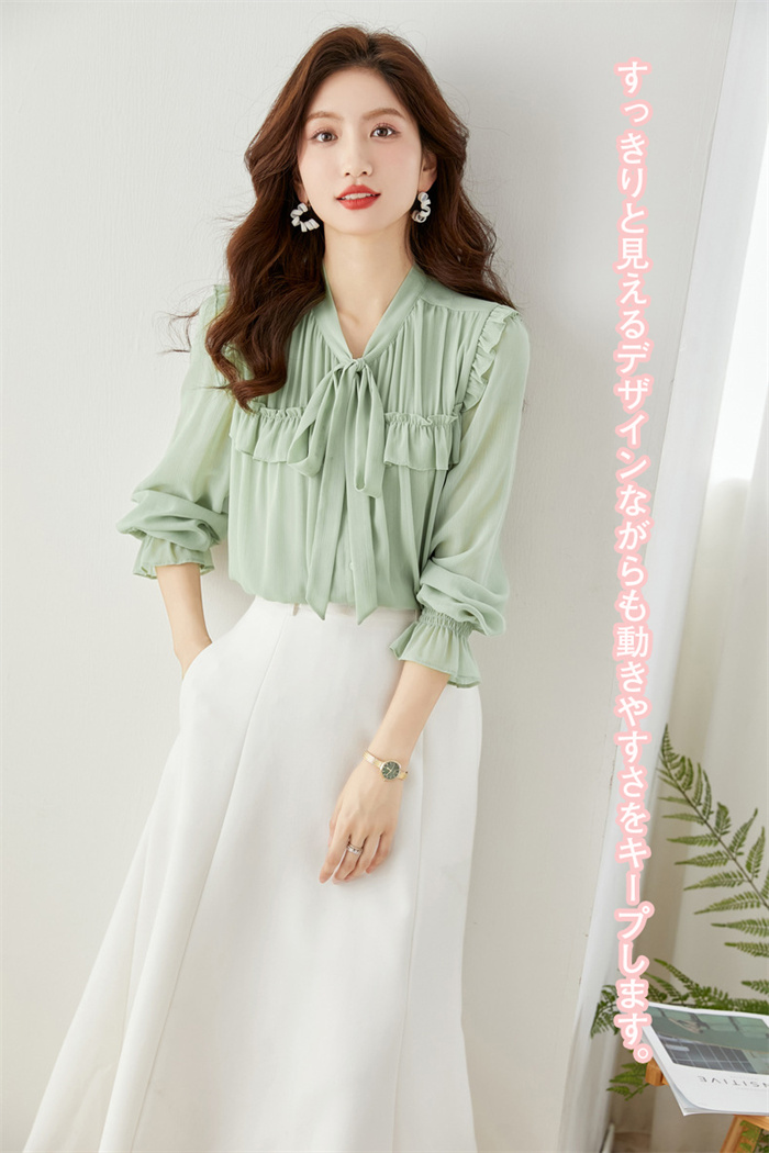 シアースリーブ ドッキングシャツ ボウタイシャツブラウス