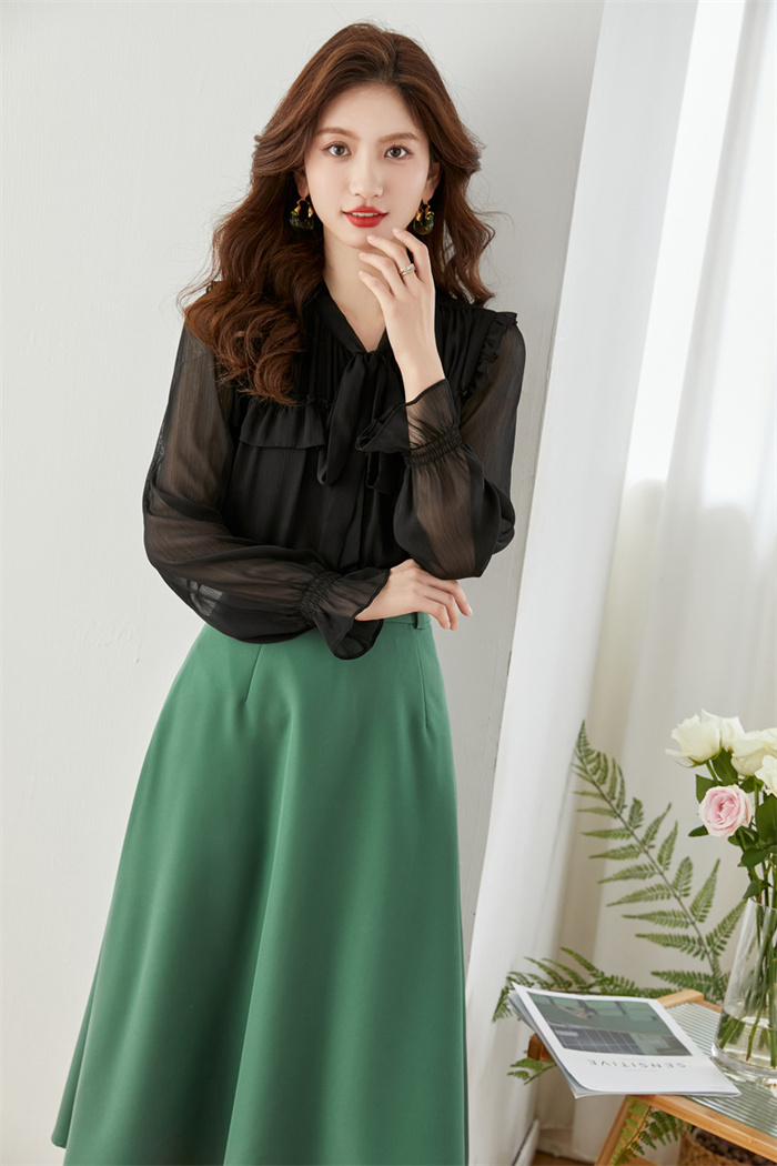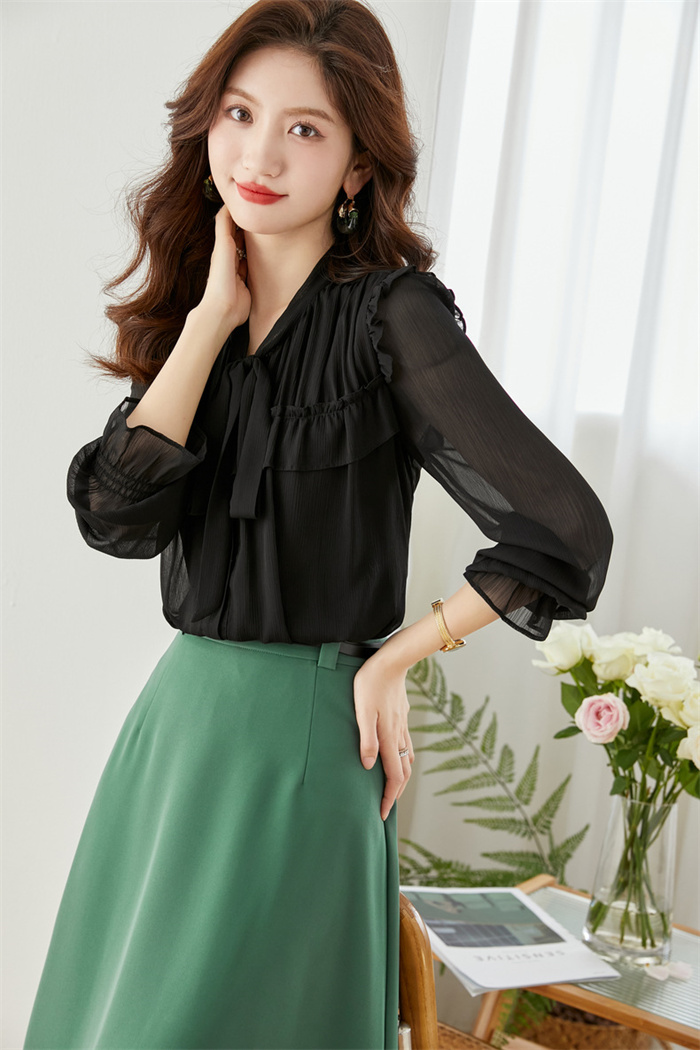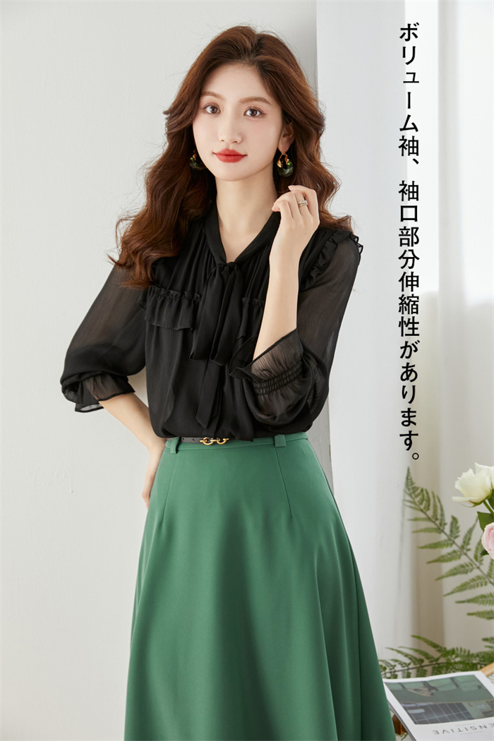 シフォンブラウス シアーブラウス ボリューム袖