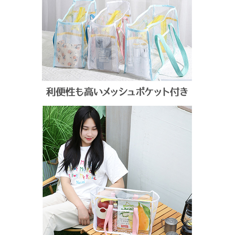 トートバッグ レディース メンズ ビーチバッグ 大人 大きめ プールバッグ メッシュバッグ 大容量 メッシュ 縦型 トート 肩掛け ショルダー 外ポケット おしゃれ 可愛い シンプル 軽い 海水浴 プール 水泳 ダイビング アウトドア 黒【品番】fs2406a22【カラー】 グリーン / ブラック / ブルー / ピンク【サイズ】