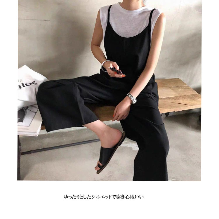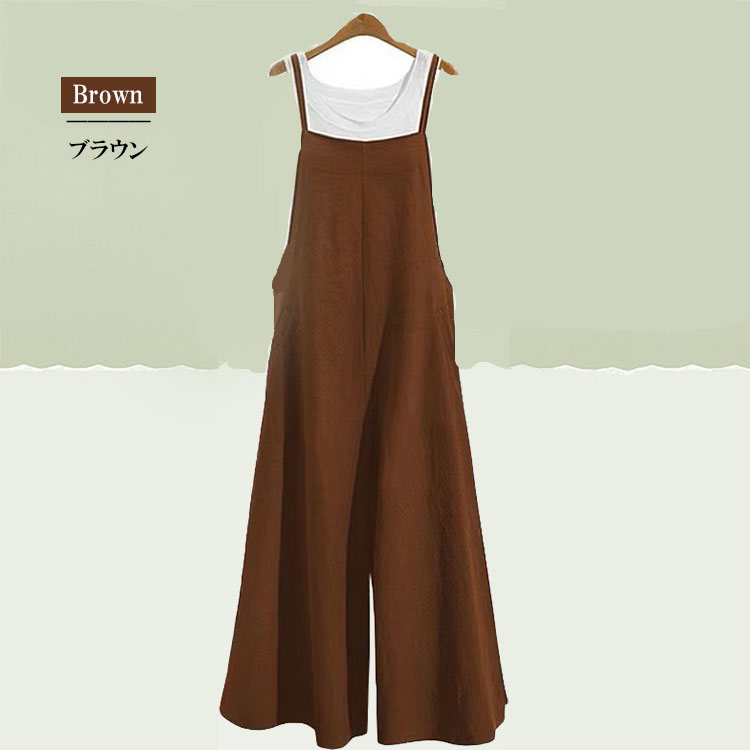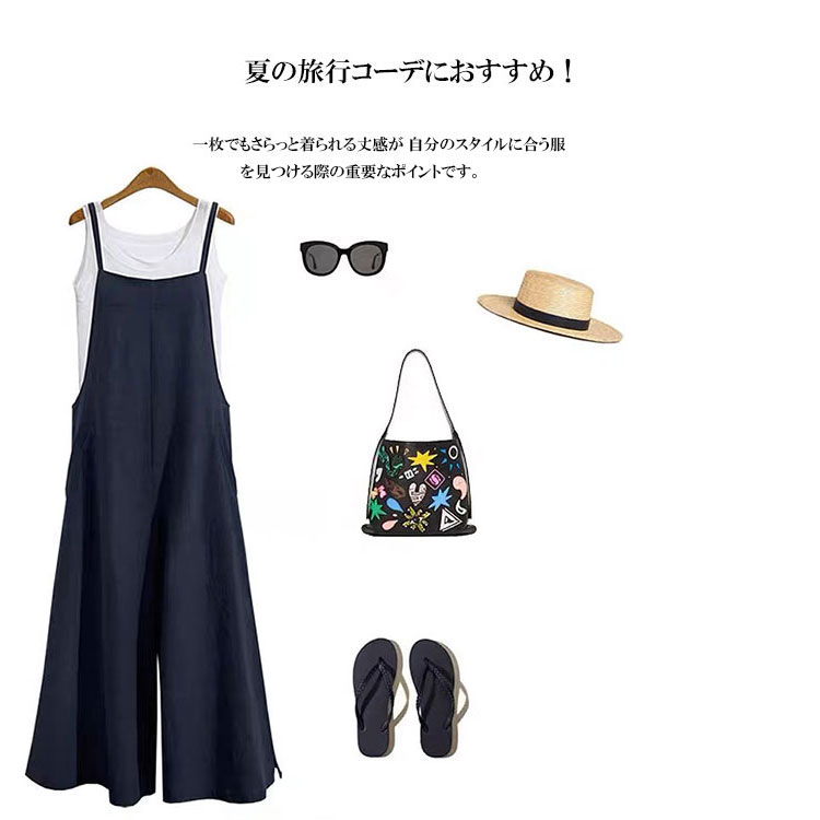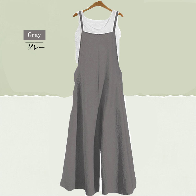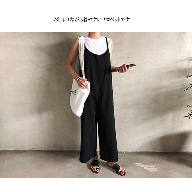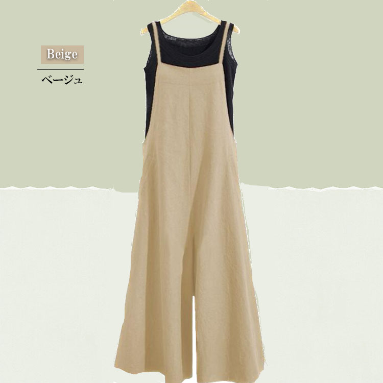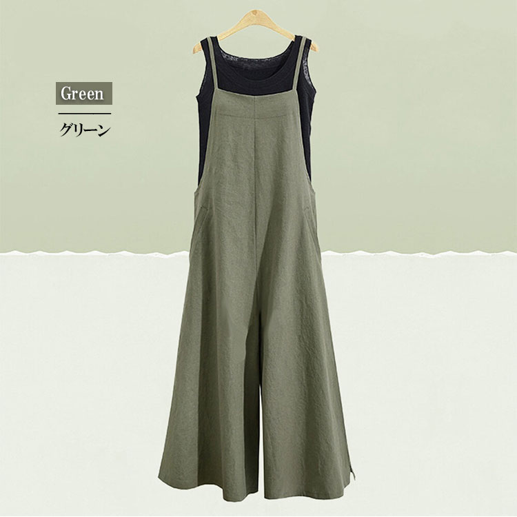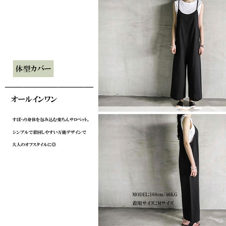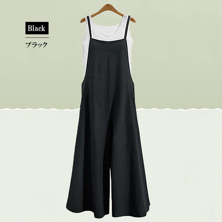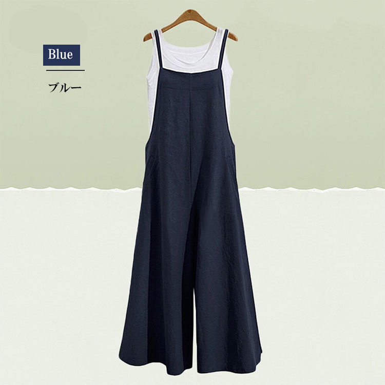 サロペット レディース 大きいサイズ ロング オーバーオール オールインワン 春夏 秋冬 ワイドパンツ キャミソール 綿 カジュアル 大人 可愛い おしゃれ ゆったり ナチュラル シンプル 無地 体型カバー マタニティ 20代 30代 40代 黒 ブルー グリーン