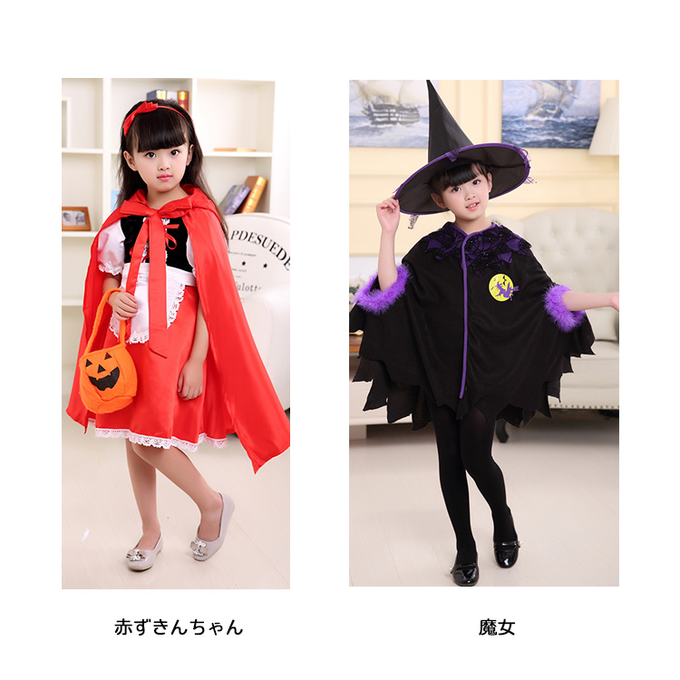ハロウィン コスプレ コスチューム キッズ ワンピース 魔法使い キッズコスチューム 子供用 かわいい ウィッチ 帽子 女の子 コスプレ仮装 魔女 赤ずきんちゃん 変装 文化祭 学園祭