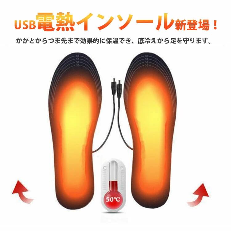 電気で足元あったか USB加熱式 加熱インソール メンズ レディース ホットインソール 水洗い可能靴 靴ケア用品 アクセサリー インソール 中敷き