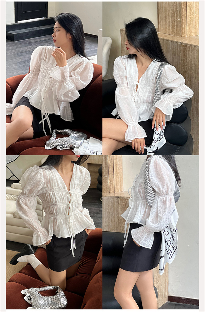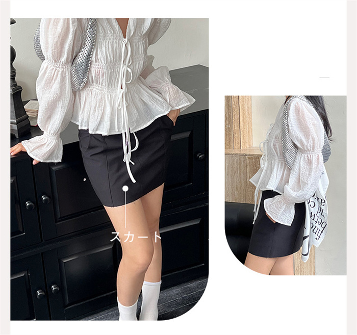 シアースリーブ ドッキングシャツ ボウタイシャツブラウス
