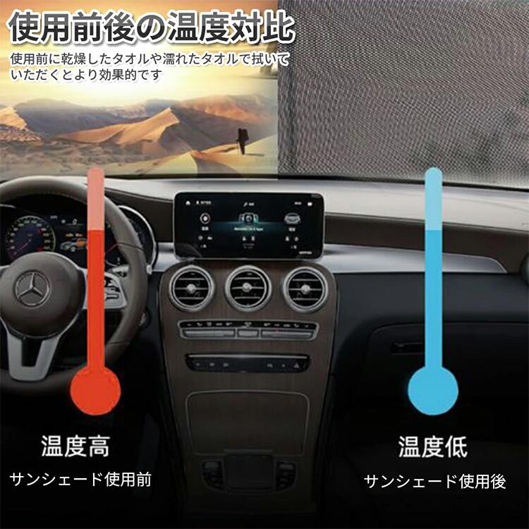 紫外線対策 (UV対策):紫外線をブロックすることで、車内のシートやダッシュボードの劣化を防ぎます。長期間の使用でも色褪せを防ぎます。