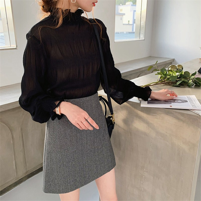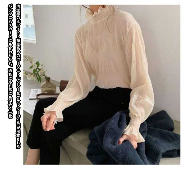 シフォンブラウス シアーブラウス ボリューム袖
