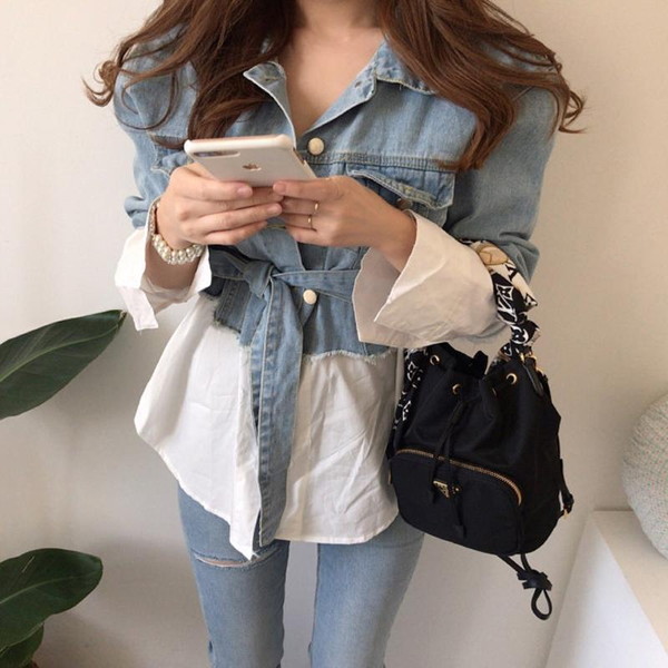 シアースリーブ ドッキングシャツ ボウタイシャツブラウス