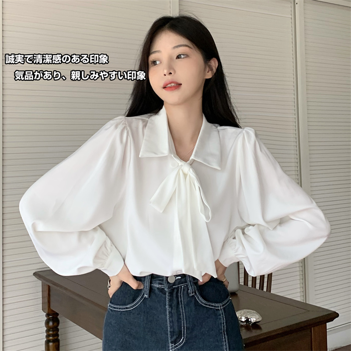 シャツ ブラウス シフォン リボン結び