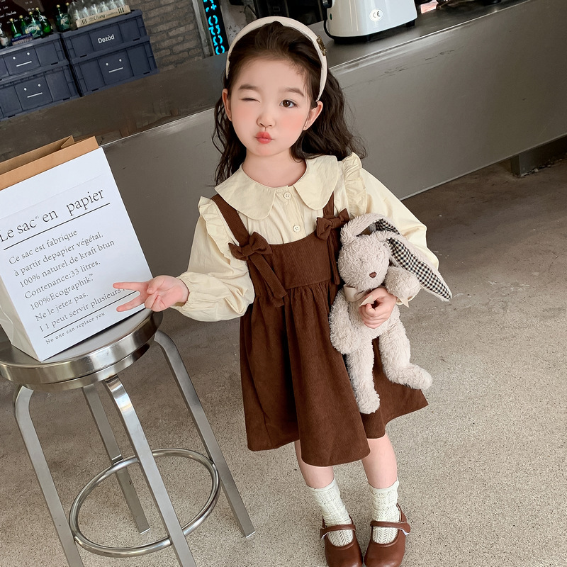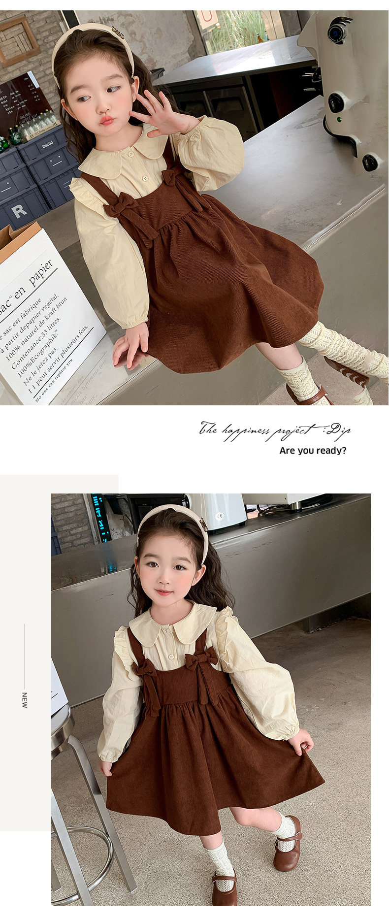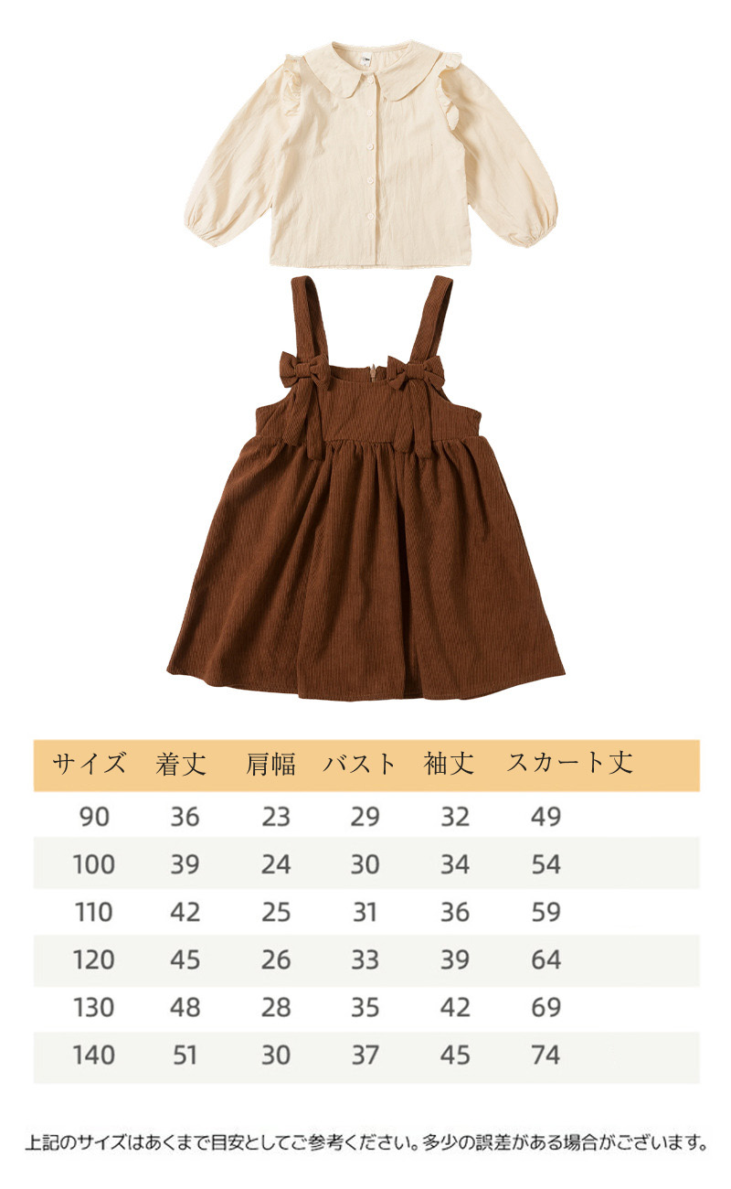 長袖 女の子 ブラウス セットアップ 長袖 ブラウン 90cm 100cm 110cm 120cm 130cm 140cm