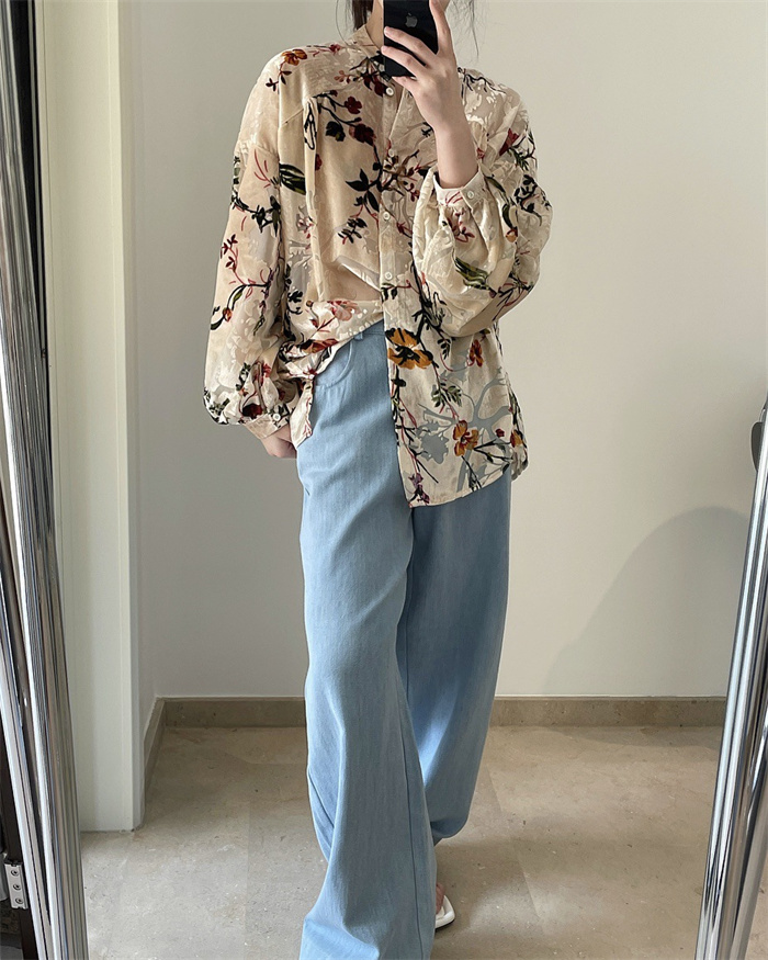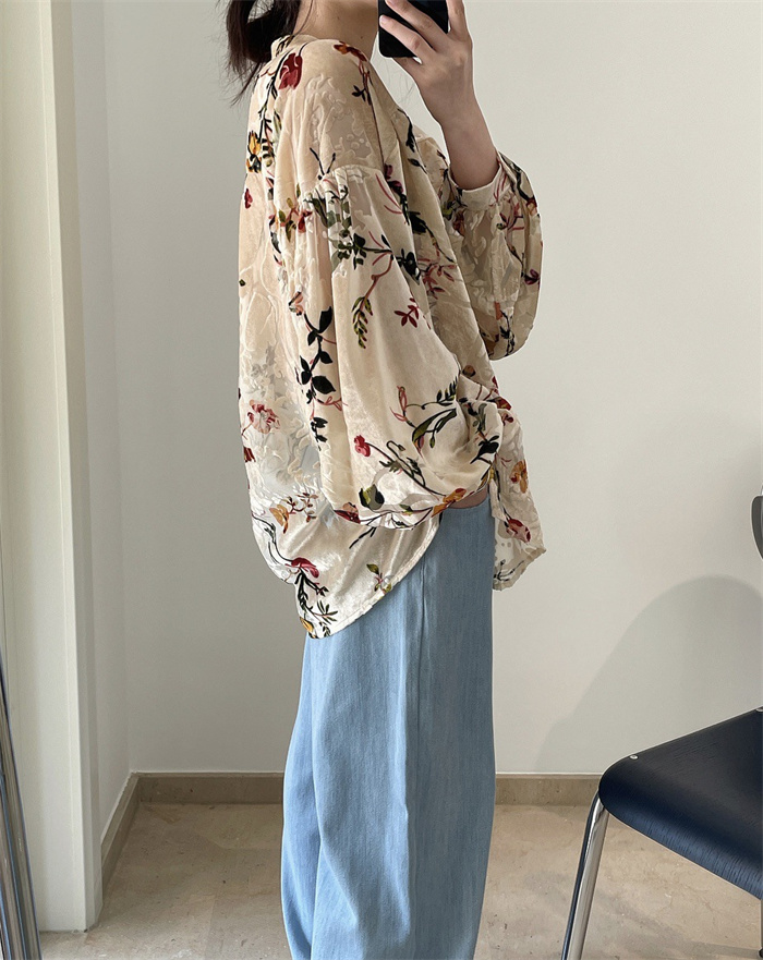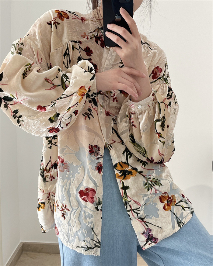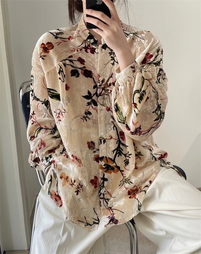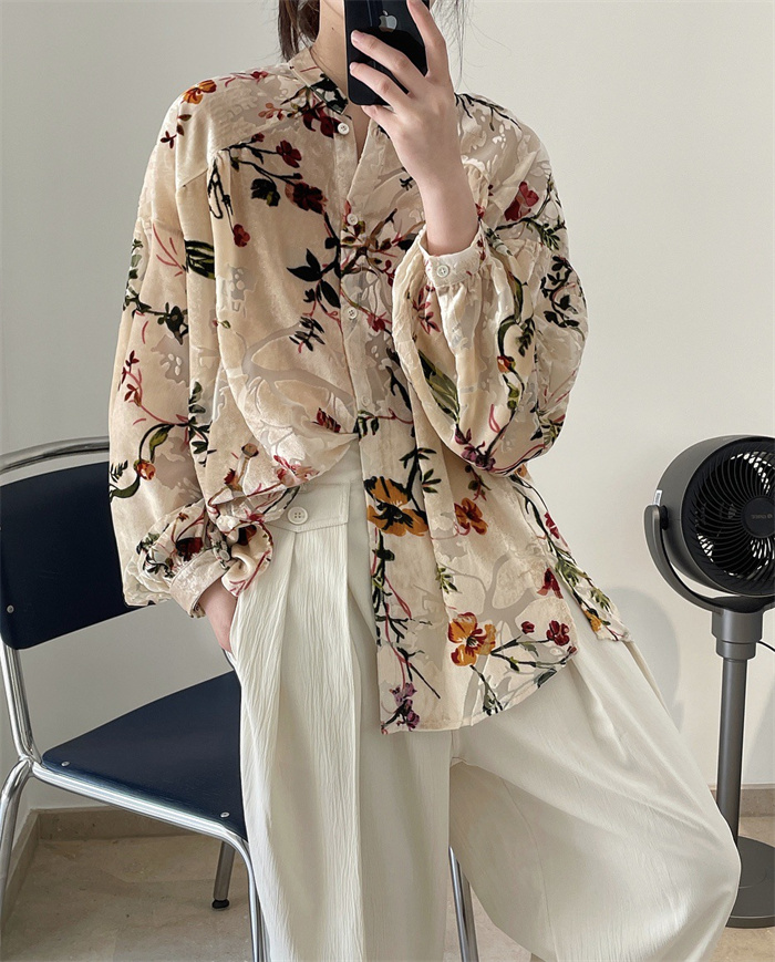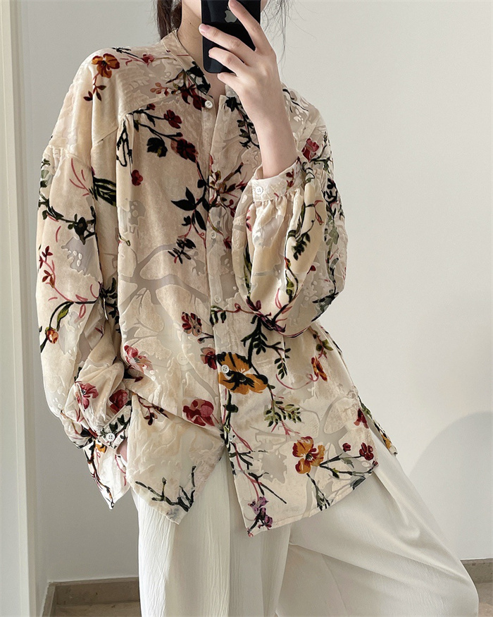 シャツ レディース レトロ花柄シャツ