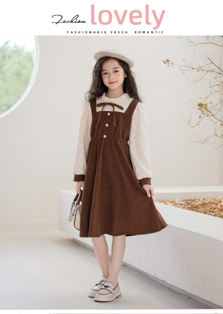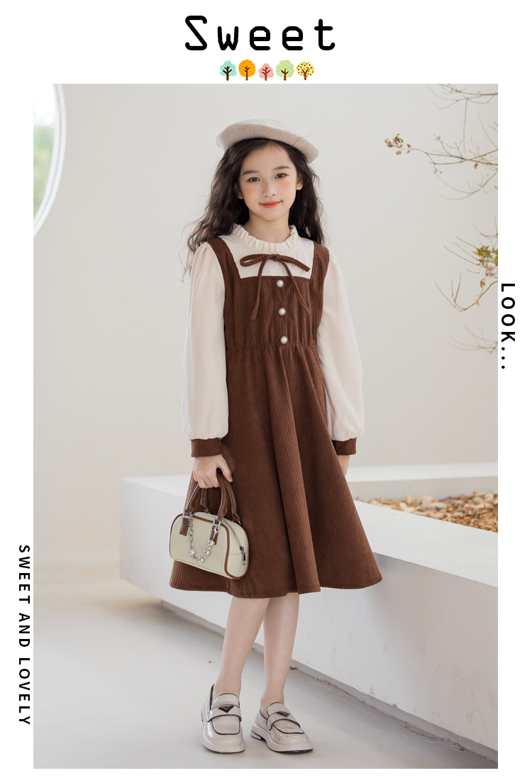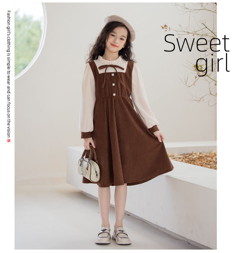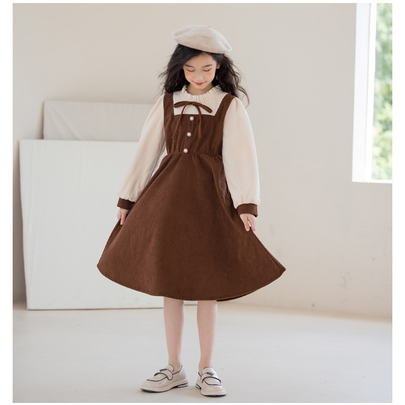 長袖 女の子 ワンピース ブラウン 子