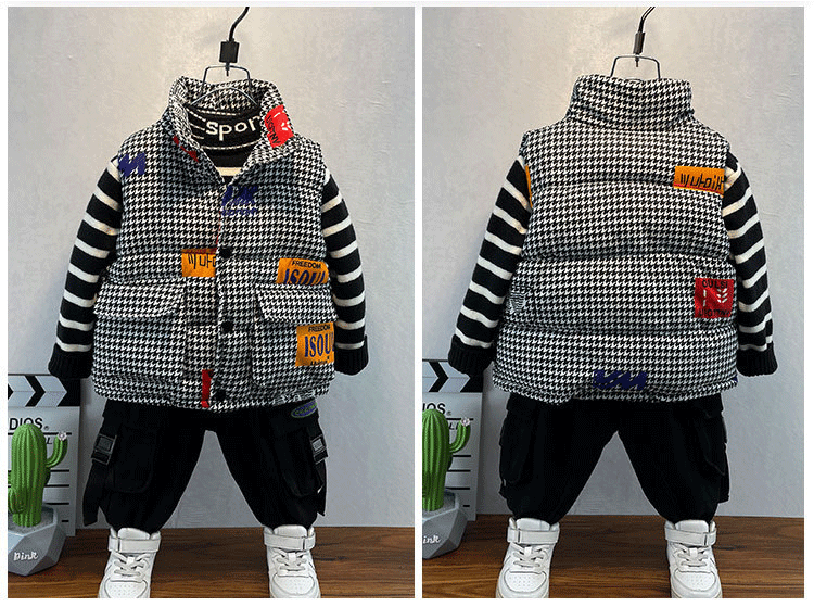 千鳥格子キッズダウンベスト 軽量 おし