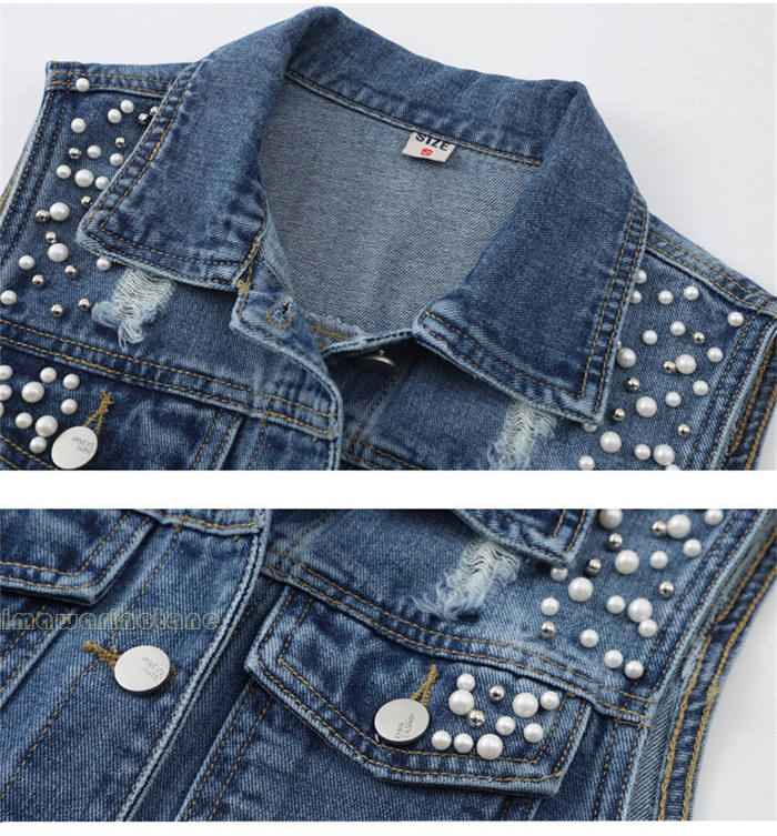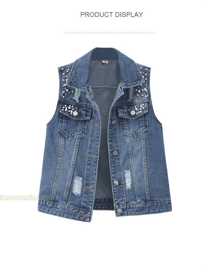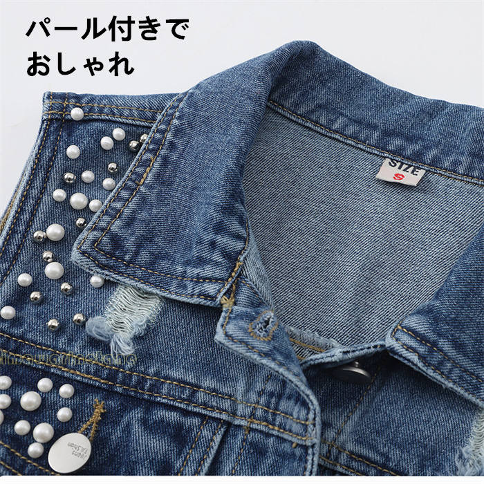 パール付きデニムベスト レディース ベ