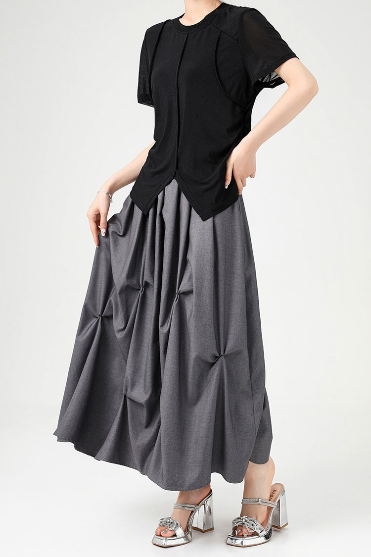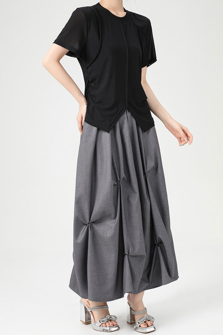 シアースリーブ ドッキングシャツ ボウタイシャツブラウス