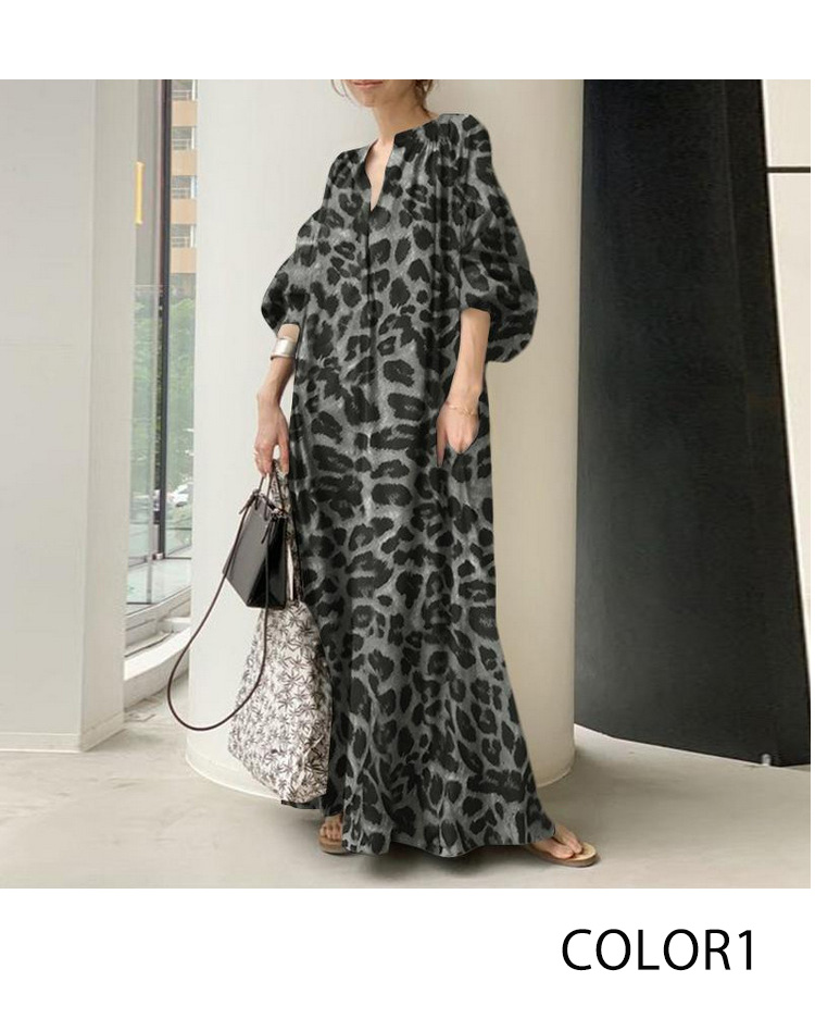 存在感抜群のレオパード柄ロングワンピー