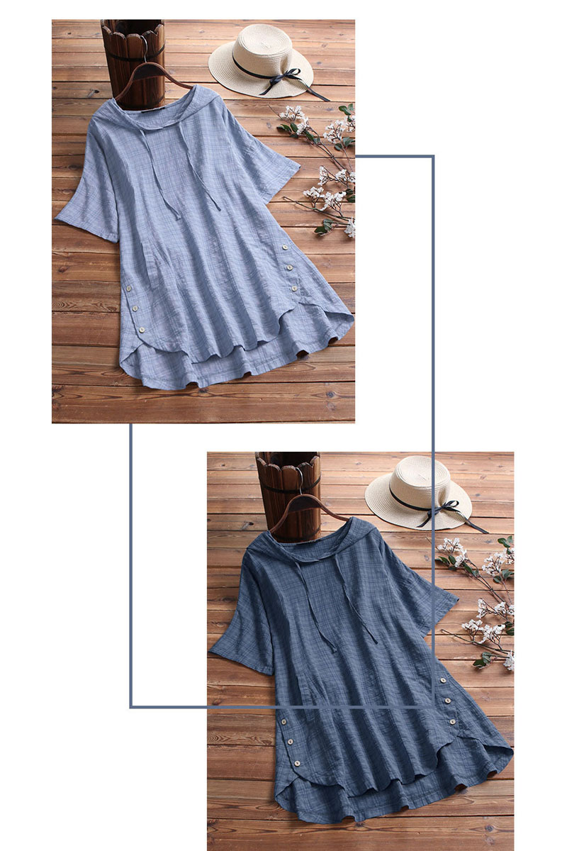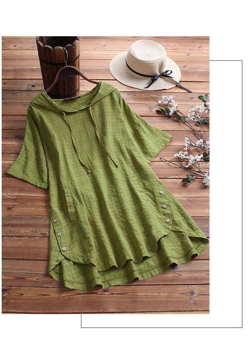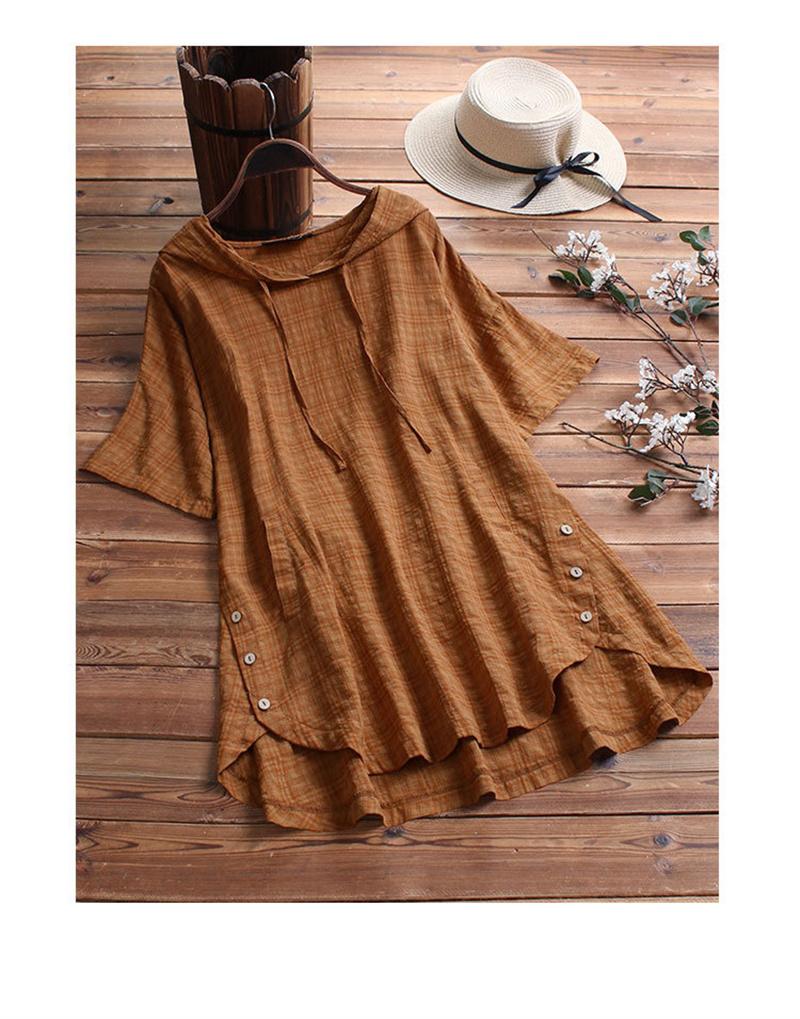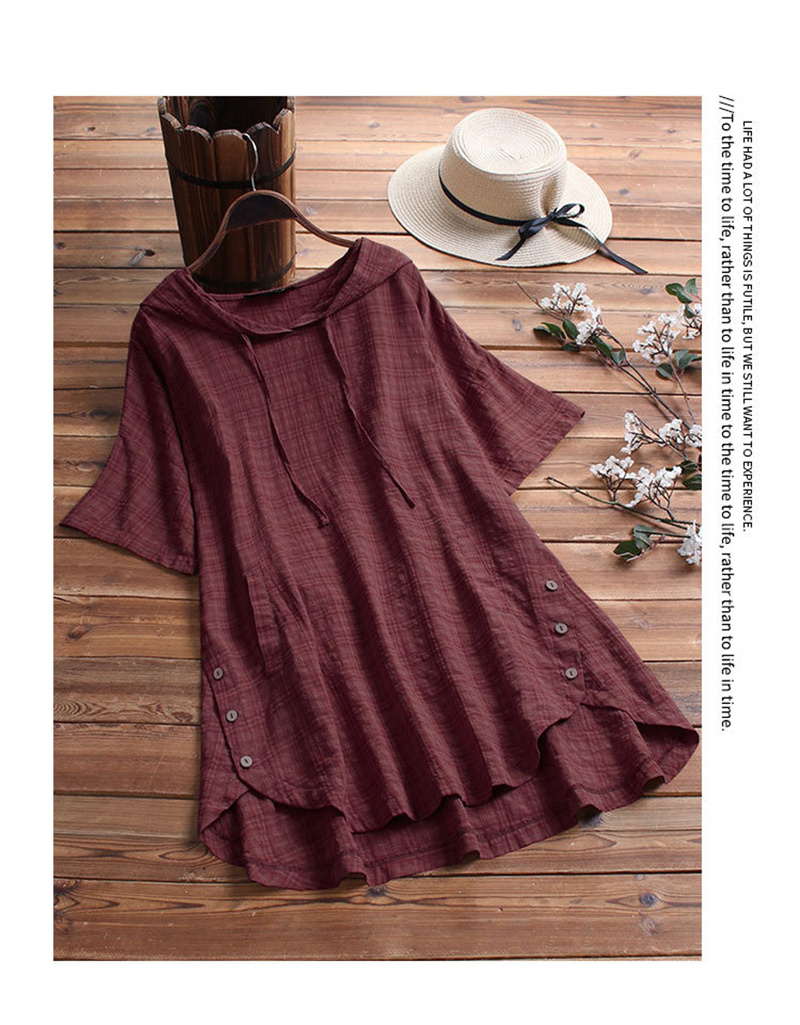 フードづきチェック柄チュニック 夏半袖