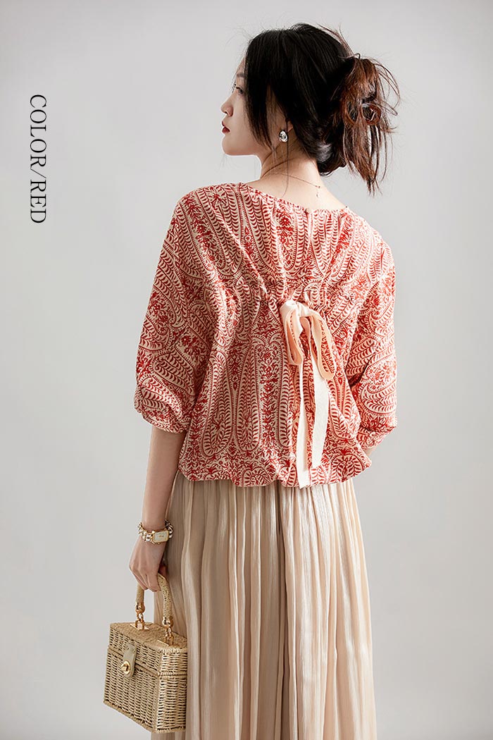 バックリボンづきおしゃれ半袖ドルマンブ