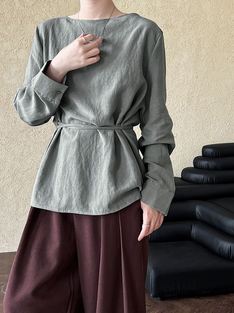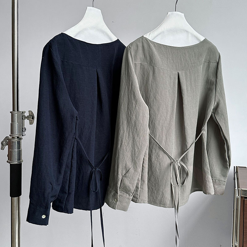 シアースリーブ ドッキングシャツ ボウタイシャツブラウス