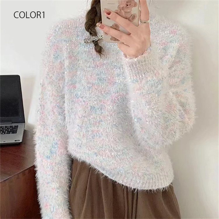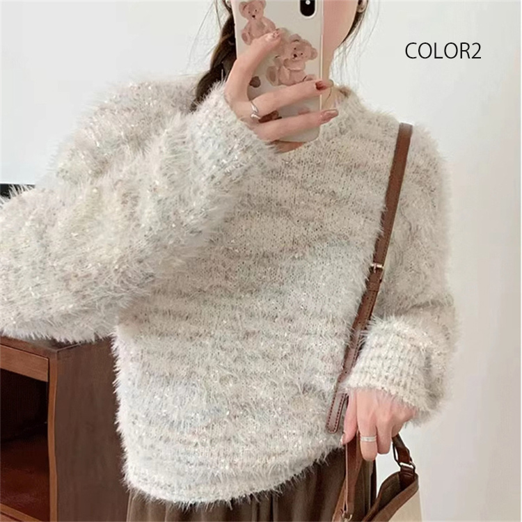 シャギー ニットトップス レディース