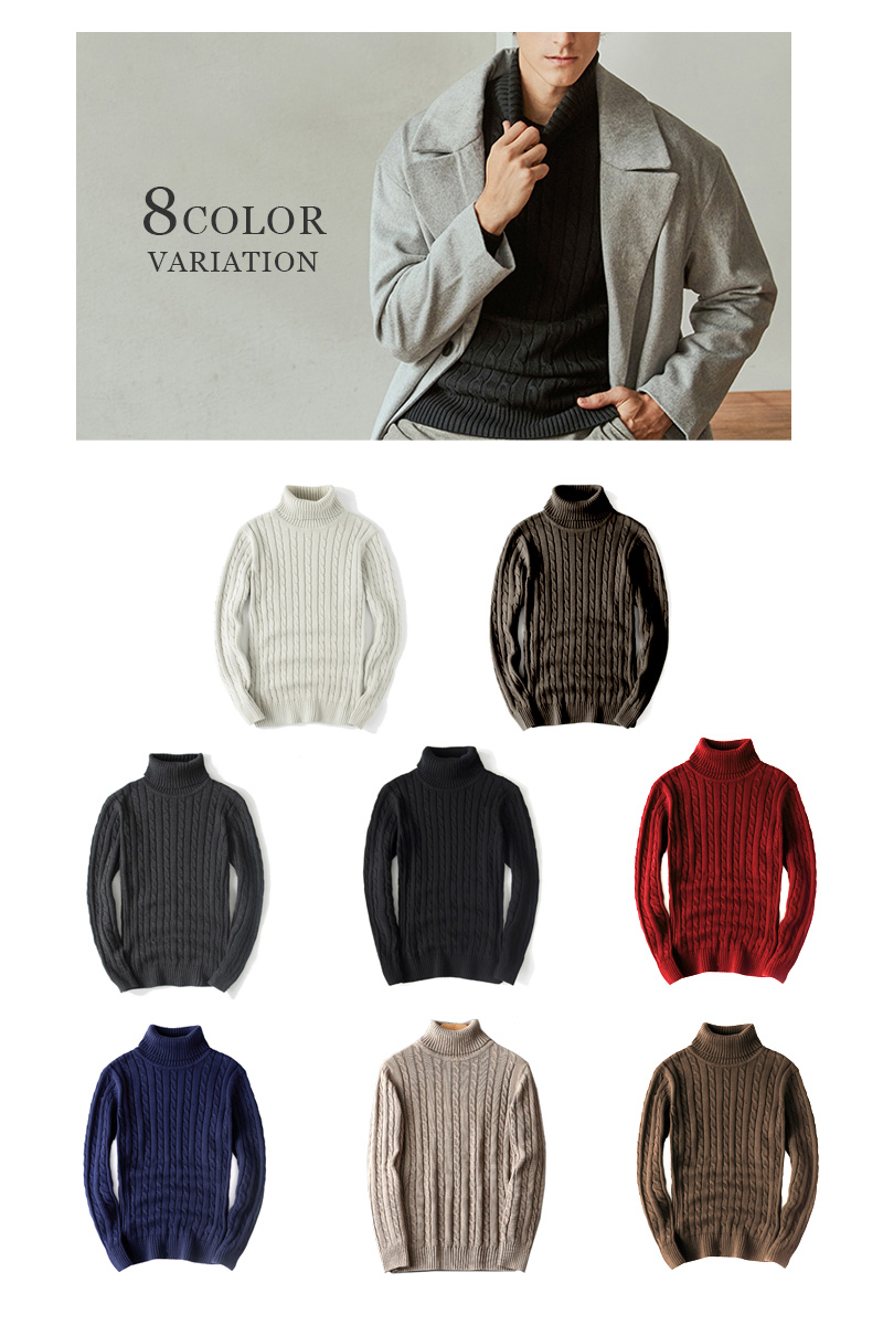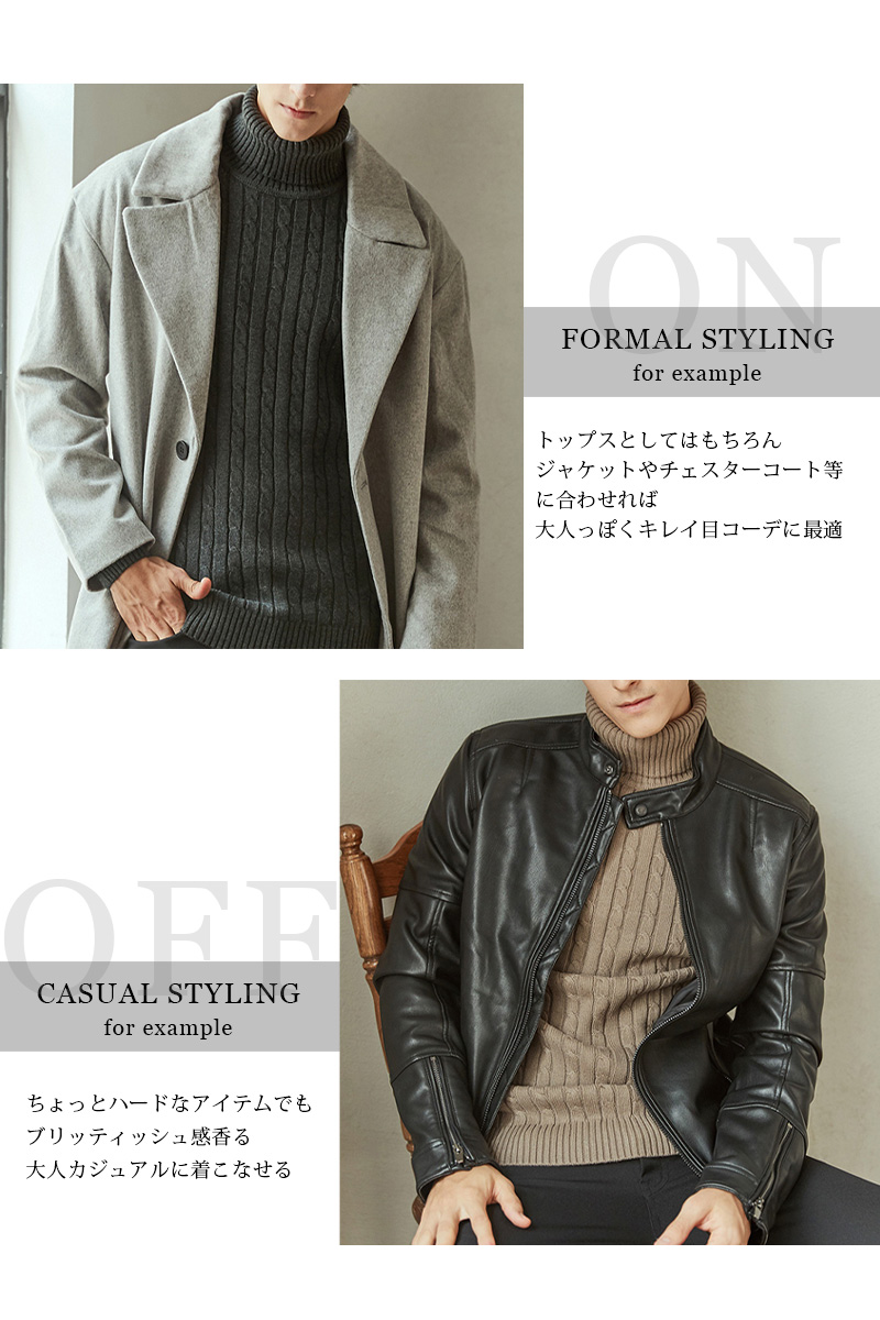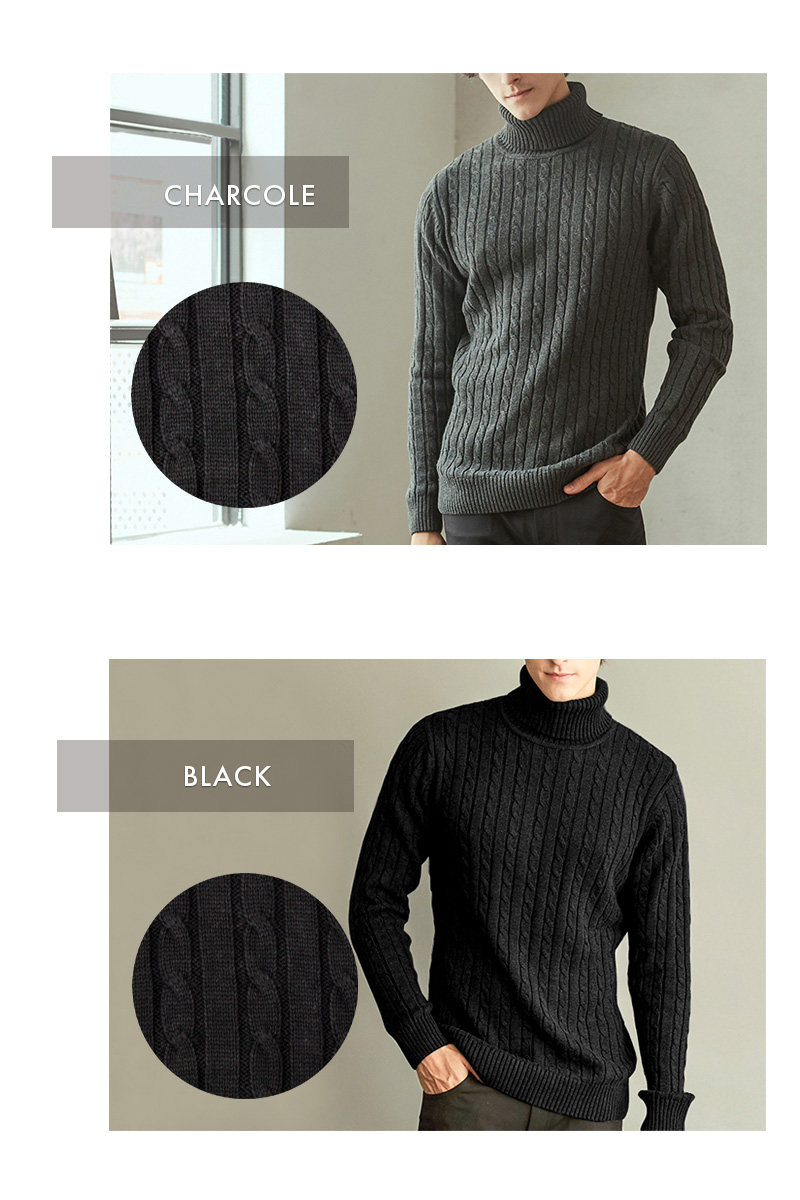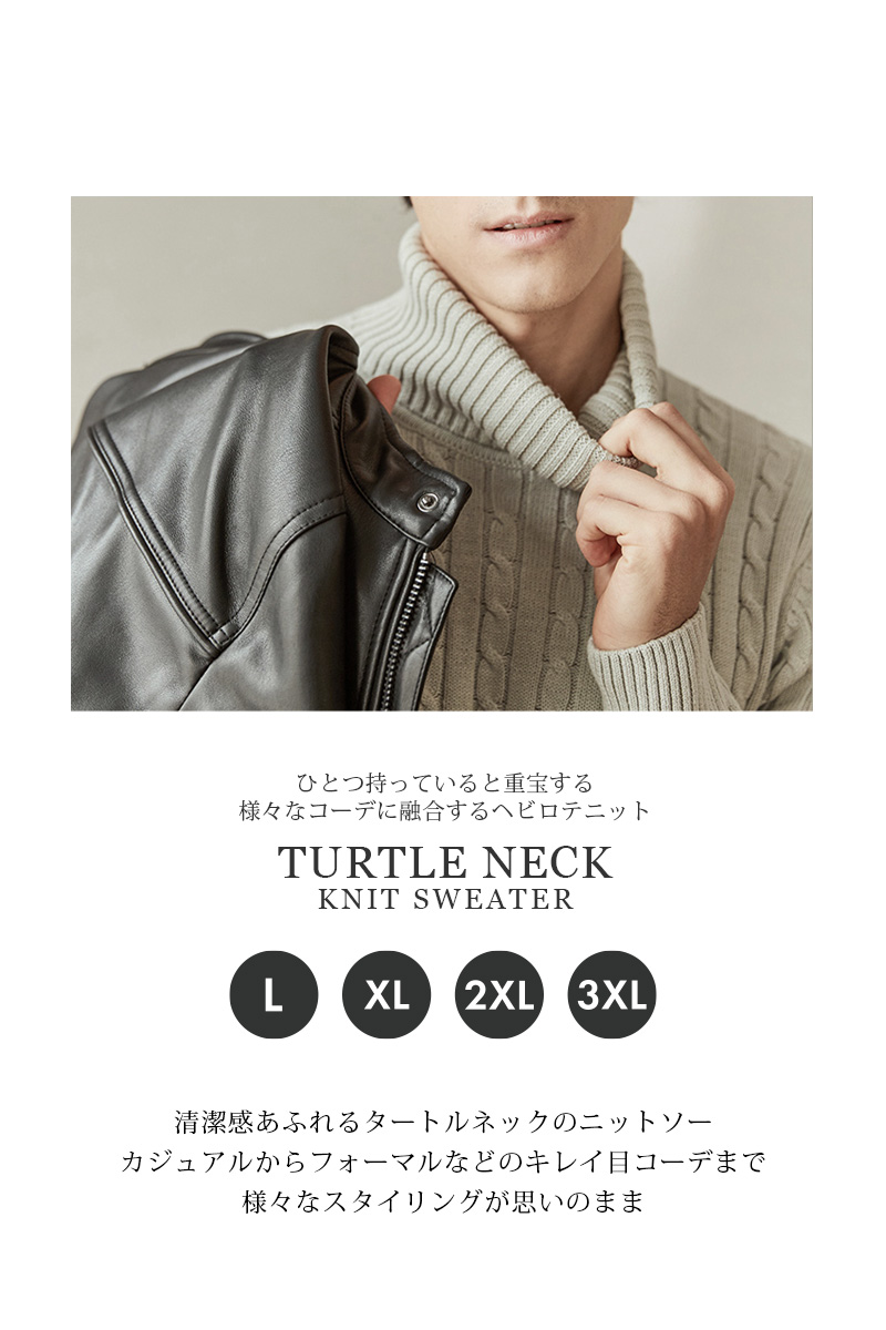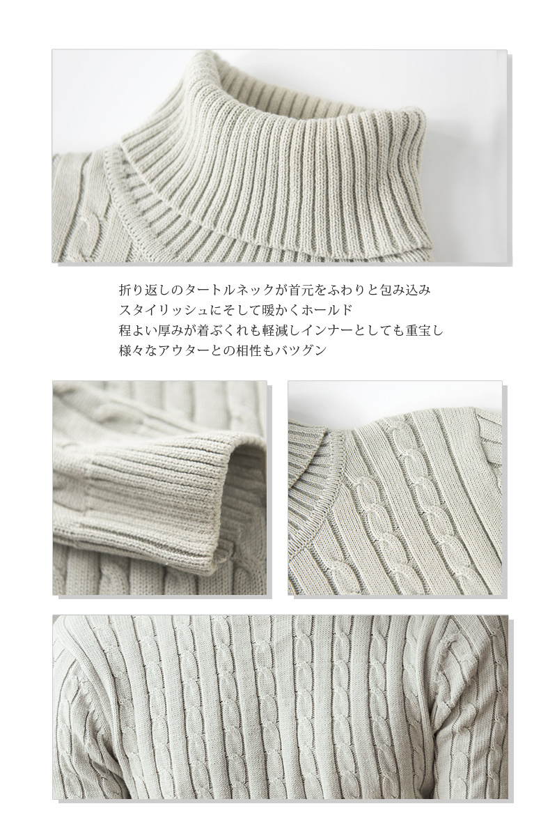ケーブル編み タートルネック ニット
