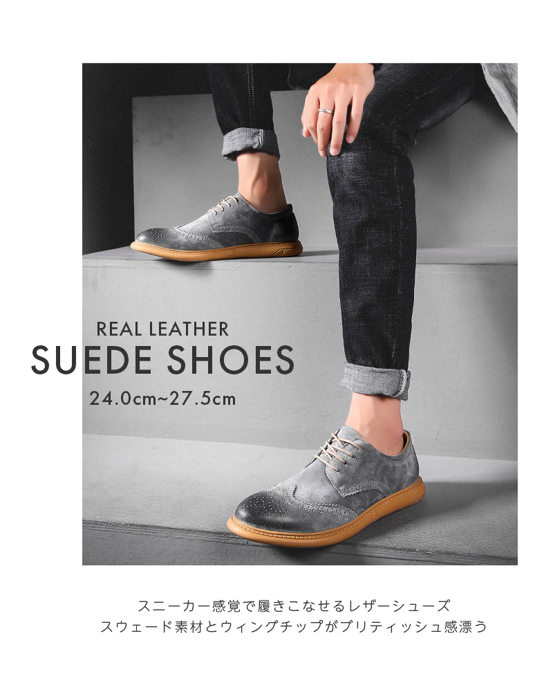 メンズ ウィングチップ スウェードシュ