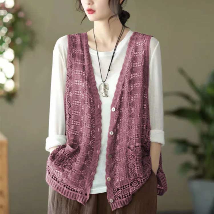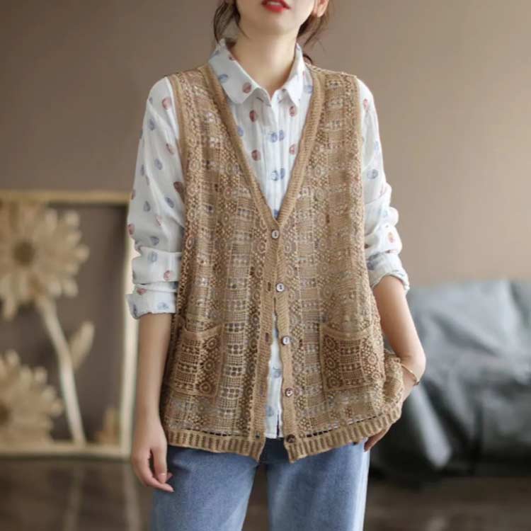 ジレ 花柄 前開き ロング ジレ 透か