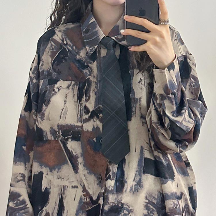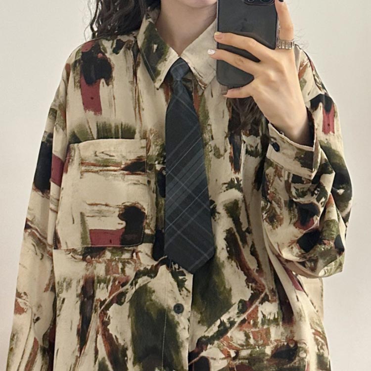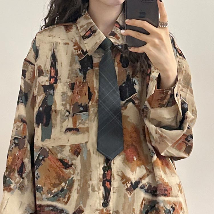 レトロ 水彩柄シャツ シャツ レディー