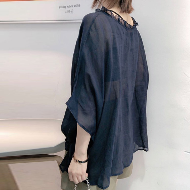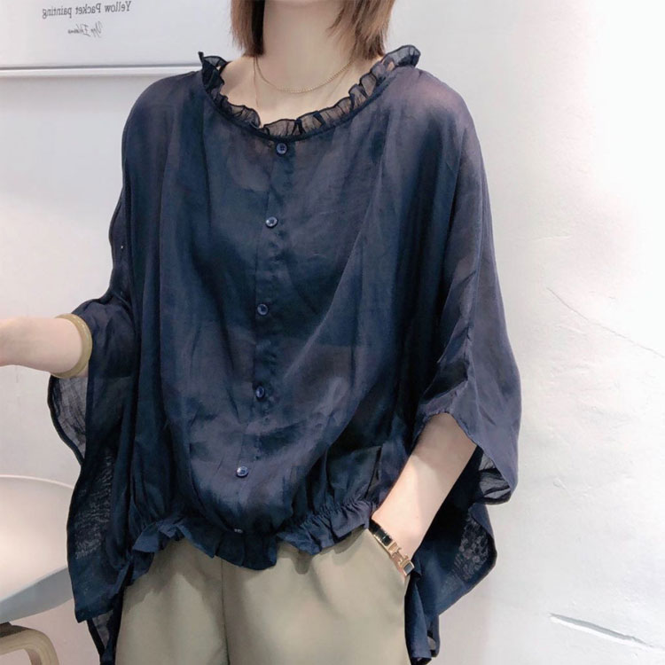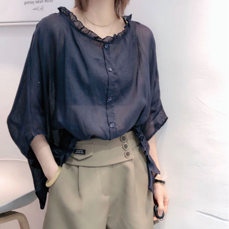 シアースリーブ ドッキングシャツ ボウタイシャツブラウス