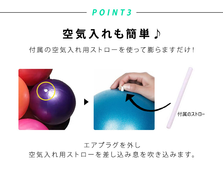 空気調節で自分に合ったボールの大きさや柔らかさを決められる ヨガボール ピラティスボール ミニバランスボール 座る 運動 体操 腹筋 自宅 PVC 滑りにくい
