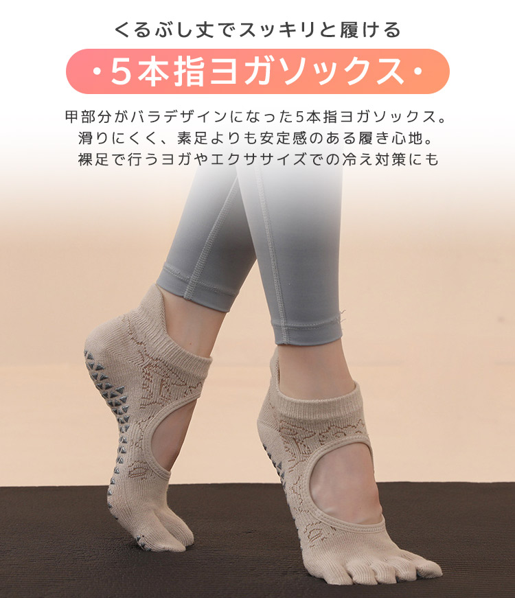 くるぶし丈でスッキリ履ける♪甲部分のバラデザインが上品♪ ヨガ靴下 女性 かわいい 五本指 くつした つま先あり ブラック 足 動かしやすい すべり止め 素足 近い フィット