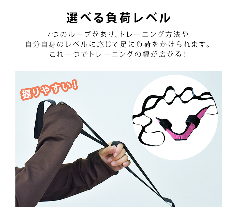 足に装着して手軽にトレーニング 自分に合う負荷の掛け方も可能 ヨガベルト 片足用トレーニングチューブ 女性 シェイプアップ リハビリ 健康 グッズ