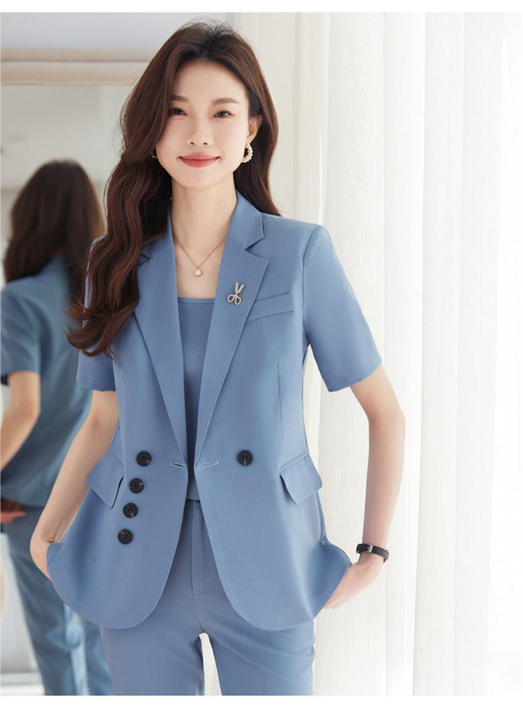 商品名 パンツスーツ レディース 半袖 ジャケット パンツ 九分丈 2点セット スラックス テーラード おしゃれ 夏物