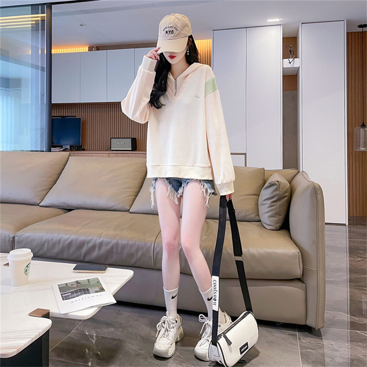 商品名 パーカー レディース 秋 Vネック プルオーバー カシュクール 薄手 ハーフジップ 長袖 ワッフル ショート丈 ガーリー フード付き 学生 ショッピング ハウスバウンド 可愛い スリムタイプ ゆっくり デート キッズ 軽い
