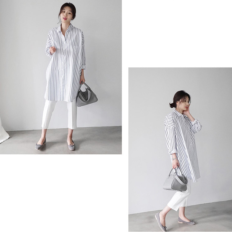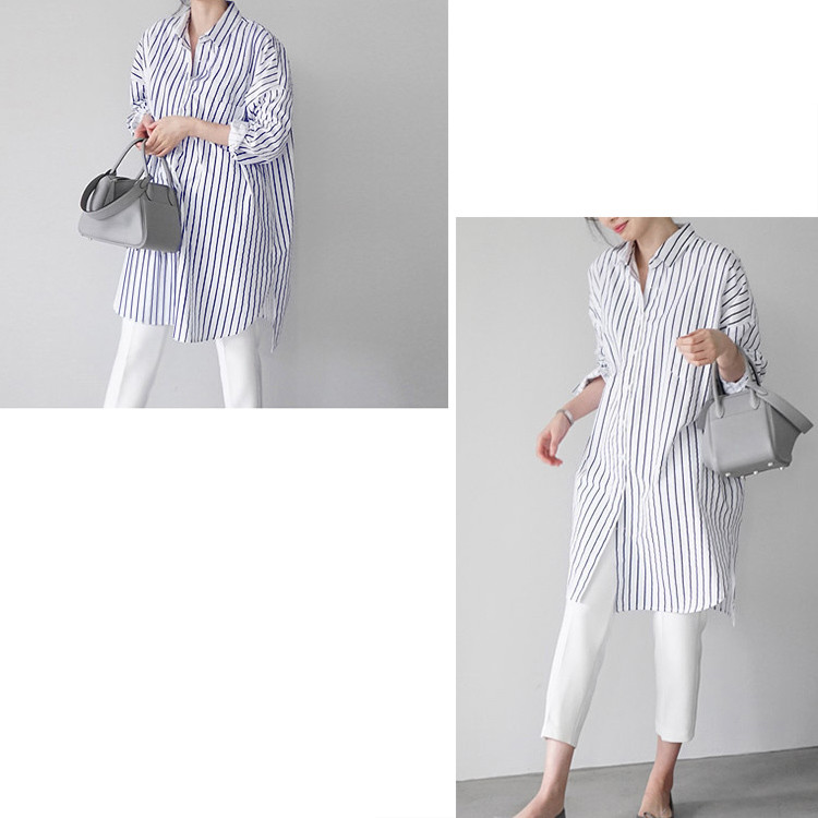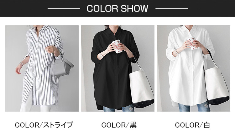商品名 シャツ ブラウス レディース ワイシャツ トップス ロングシャツ 長袖 秋 春 カラーシャツ ビジネス シンプル 薄手 大きいサイズ インナー ストライプ オフィス チュニック オフィスカジュアル 夏 秋 ルームウェア