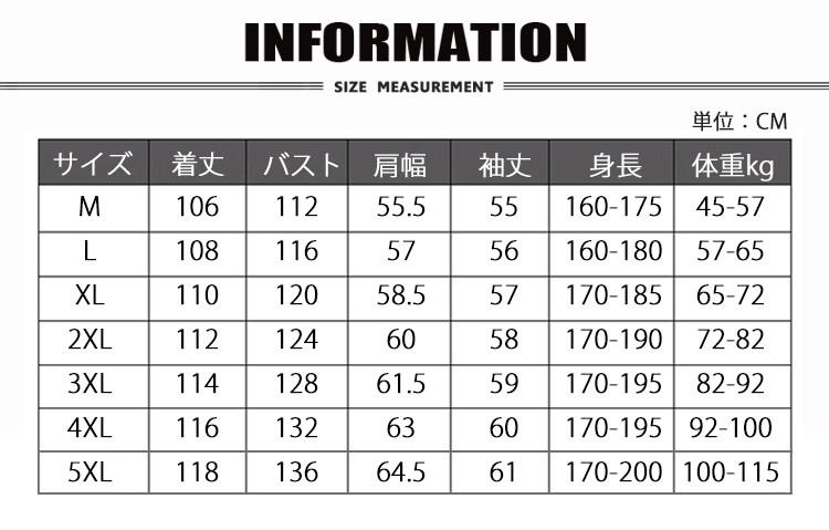 サイズ M|L|XL|2XL|3XL|4XL|5XL