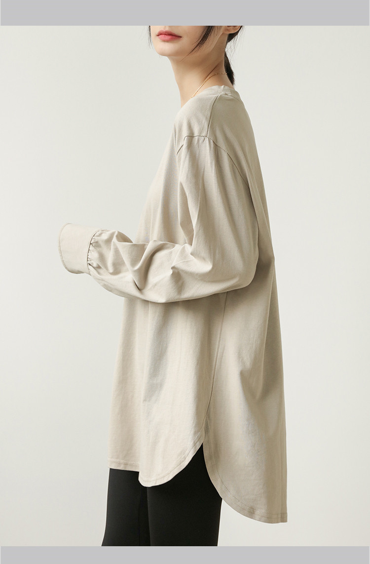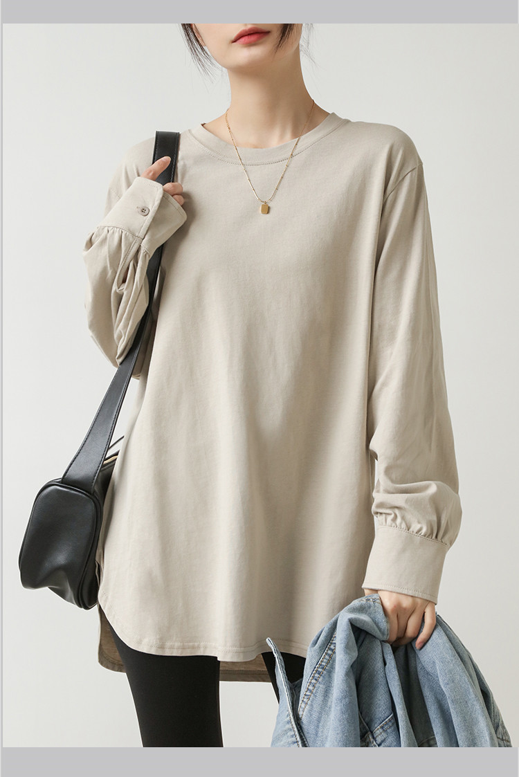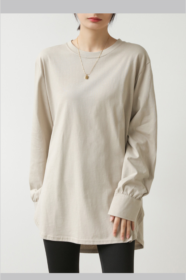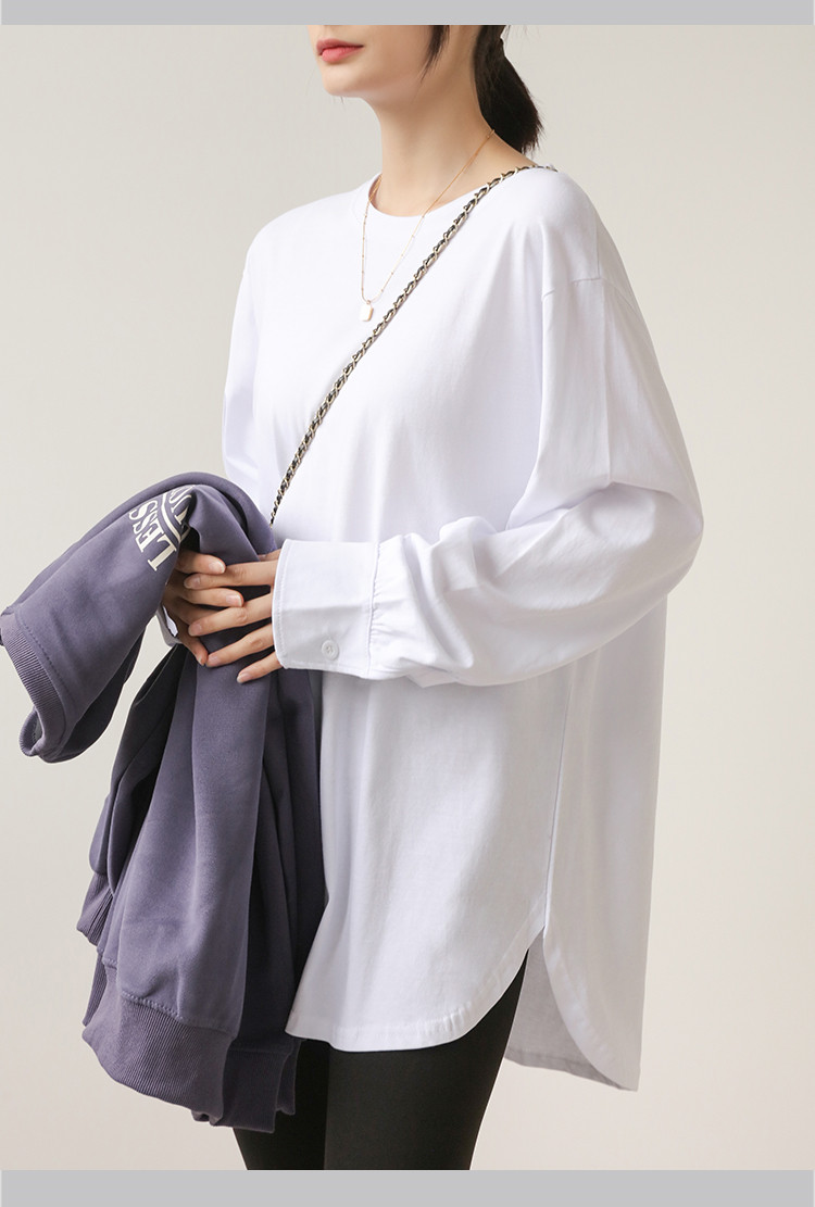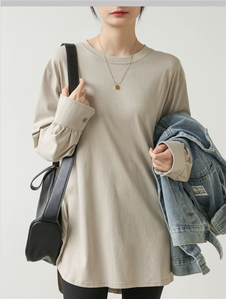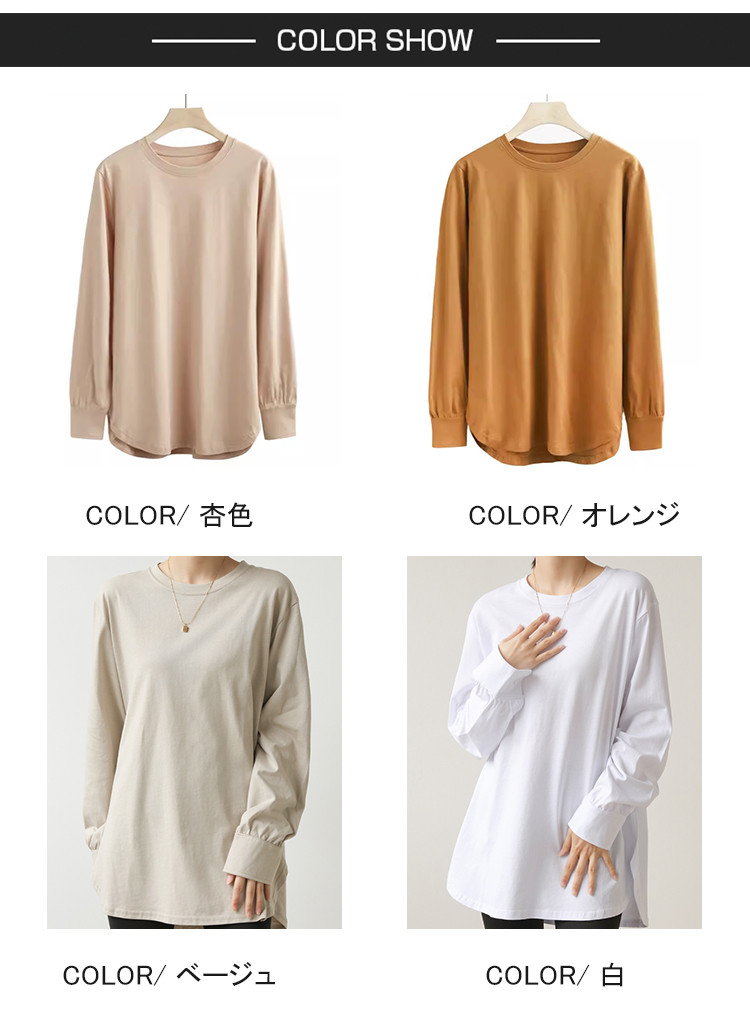 商品名 長袖tシャツ シャツ ロングTシャツ レディース トップス プルオーバー 長袖 インナー コットン100% 綿 リラクゼーション効果 ドロップショルダー Tシャツ クルーネック 重ね着 秋 冬 クールネック 無地 シンプル オフィス 通勤 ルームウェア